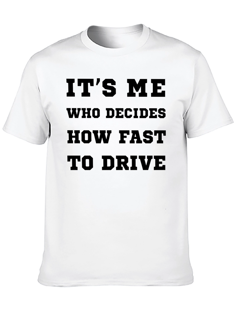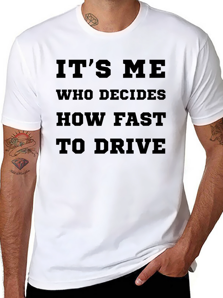 Show off your unique sense of humor with this eye-catching black t-shirt. Crafted from comfortable, breathable fabric, this tee features a bold statement: "IT'S ME WHO DECIDES HOW FAST TO DRIVE" in a prominent, easy-to-read font. The classic fit makes it perfect for everyday wear, casual outings, or as a fun conversation starter. It's a great way to express your personality and make a statement, whether you're a cautious driver or a speed enthusiast. This shirt is designed to be durable and long-lasting, ensuring it remains a staple in your wardrobe for years to come.