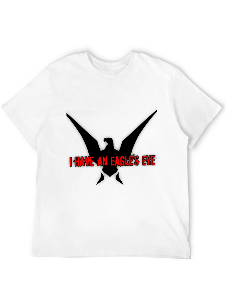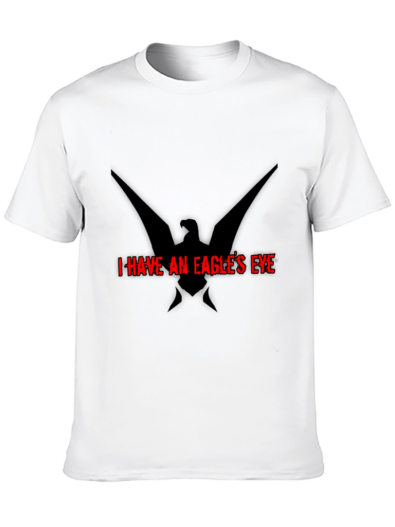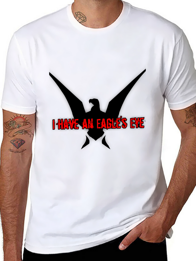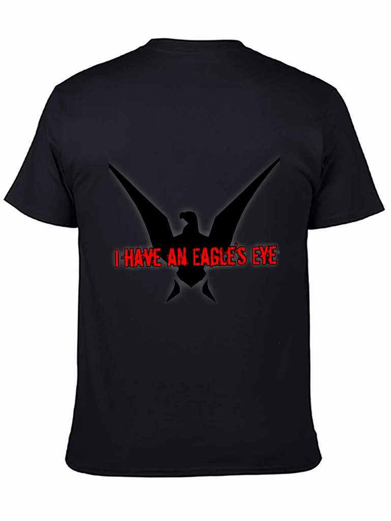 Show off your sharp style with this striking black t-shirt featuring a bold eagle graphic and the phrase "I HAVE AN EAGLE'S EYE" in vivid red. Crafted from comfortable and durable materials, this tee offers a great fit and feel for everyday wear. The unique design adds an edgy touch, making it perfect for casual outings, concerts, or expressing your individual style. Stand out from the crowd with this eye-catching tee that combines comfort and distinctive graphics. An ideal choice for those who appreciate bold statements and modern aesthetics.