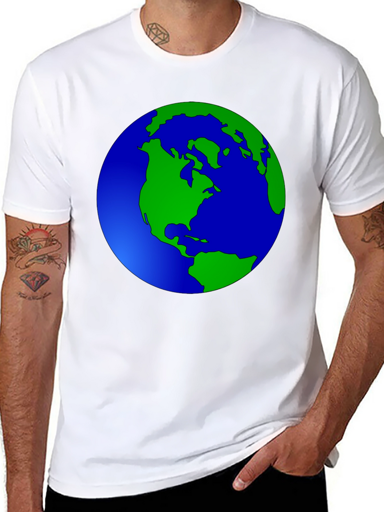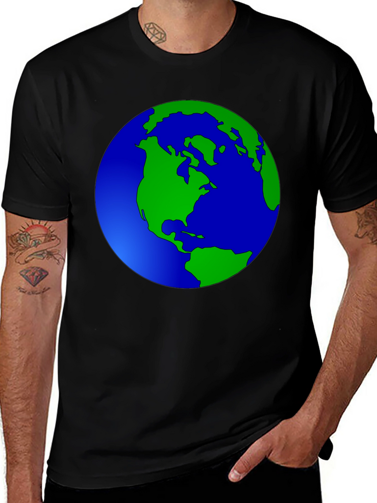 Show your love for our planet with this stylish graphic t-shirt. Featuring a vibrant illustration of the Earth, prominently displaying North America, this tee is perfect for environmentalists, travelers, and anyone who appreciates unique designs. The shirt appears to be crafted from a soft, comfortable fabric, ensuring all-day wearability. Its classic fit makes it suitable for various occasions, from casual outings to social events. The black color of the shirt makes the earth image pop. This is a great addition to your wardrobe!