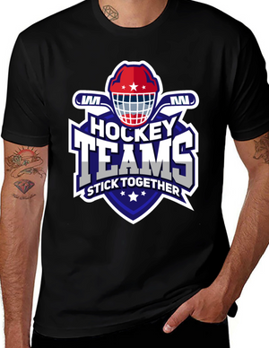Show your love for the game with this stylish black graphic t-shirt. Featuring a bold design with a hockey mask, stick, and the phrase "Eat Sleep Hockey Repeat", this tee is perfect for players and fans alike. Made from a soft, comfortable fabric, it's ideal for casual wear, practices, or cheering on your favorite team. A must-have for any hockey enthusiast, this shirt combines comfort and style to create a winning look. Grab yours and let everyone know your passion for hockey!