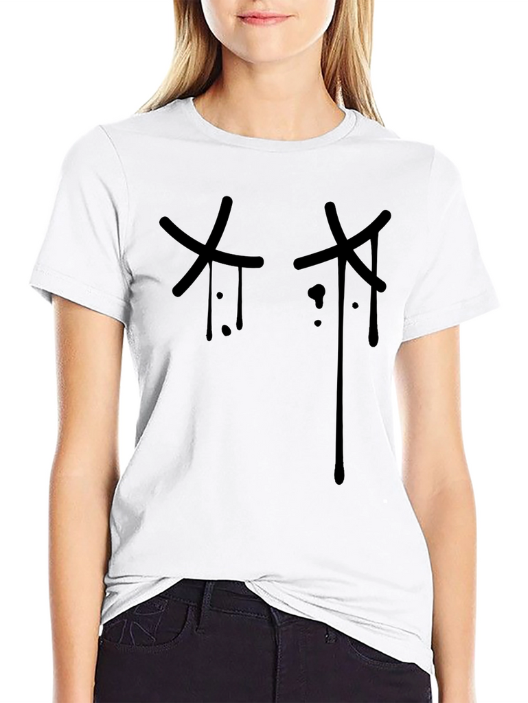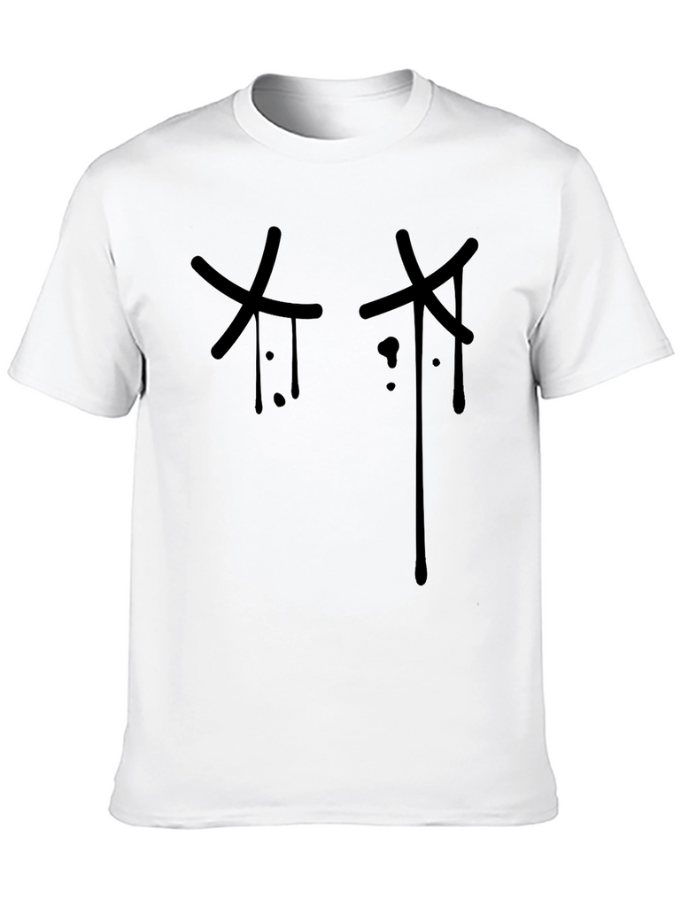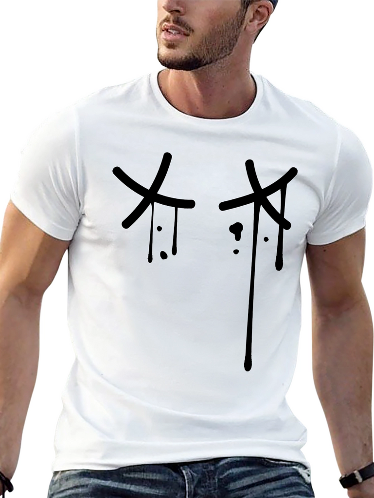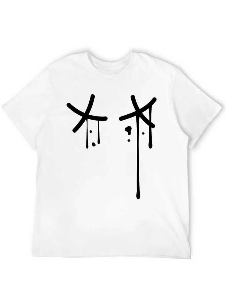 Make a bold statement with this eye-catching black graphic tee. The shirt features a unique "XX" design with dripping lines, creating an edgy and modern look. Made from a comfortable, breathable fabric, this tee is perfect for everyday wear or for expressing your individuality at social gatherings. Its minimalist design makes it versatile and easy to pair with jeans, shorts, or layered under a jacket. Stand out from the crowd with this distinctly cool graphic tee that's sure to turn heads and spark conversations.