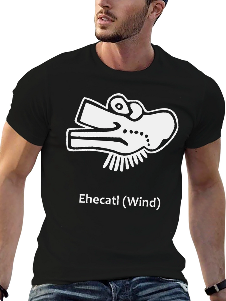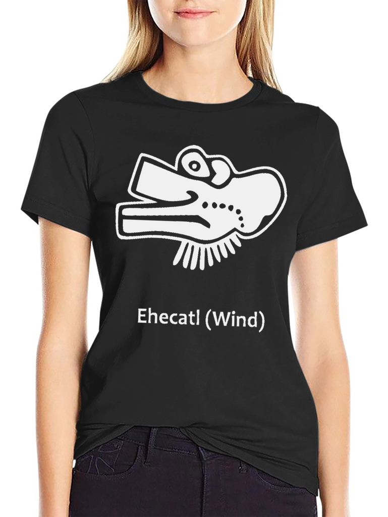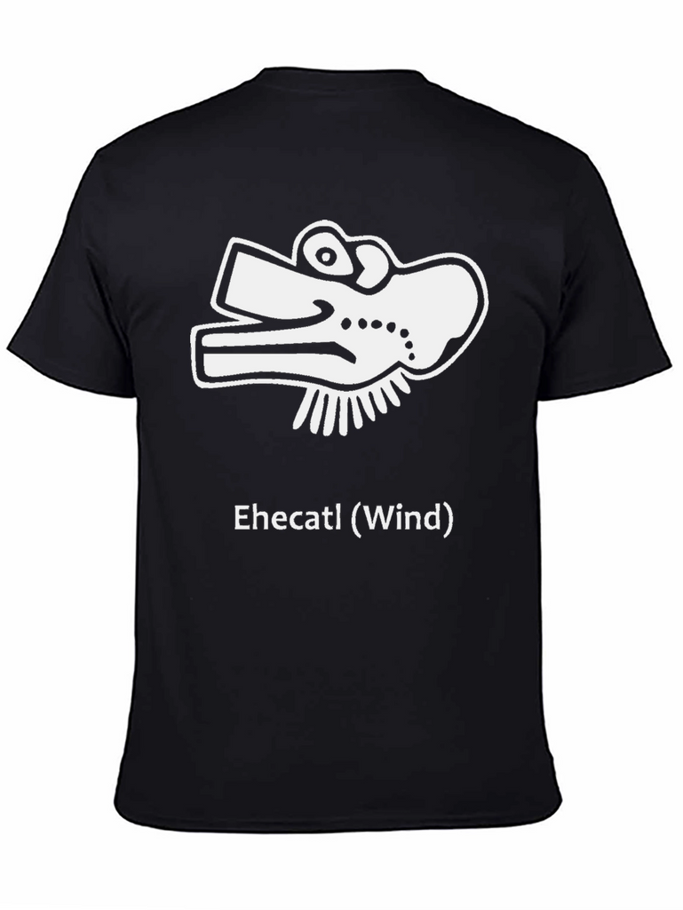 Showcase your love for Mesoamerican history with this striking black t-shirt. Featuring a bold, stylized graphic of Ehecatl, the Aztec god of wind, this tee is a unique statement piece. The design is printed in white, contrasting sharply against the black fabric, making it visually appealing and easy to read. Crafted from a soft, comfortable material, this t-shirt is perfect for everyday wear. Whether you're exploring a museum, hanging out with friends, or simply relaxing at home, let this t-shirt be a conversation starter and a testament to your unique style.
