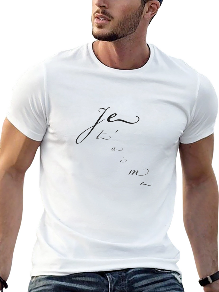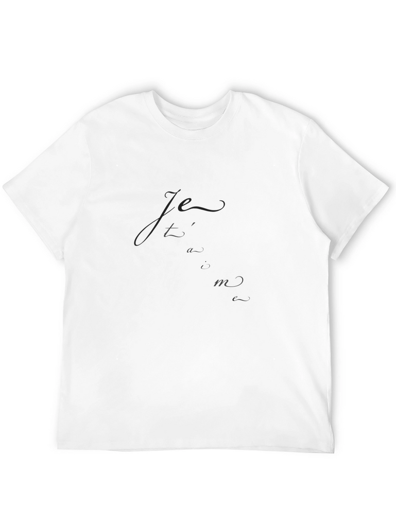This sleek black t-shirt features a subtle and sophisticated "Je t'aime" design, making it a stylish addition to any wardrobe. The minimalist approach allows for versatility, perfect for both casual outings and relaxed evenings. Crafted from a soft, breathable fabric, this tee offers superior comfort and a flattering fit. Its understated elegance makes it an ideal choice for those who appreciate refined style and subtle expressions of affection. Pair it with jeans for a laid-back look or dress it up with a blazer for a more polished ensemble. This tee is a must-have for adding a touch of French romance to your everyday style.