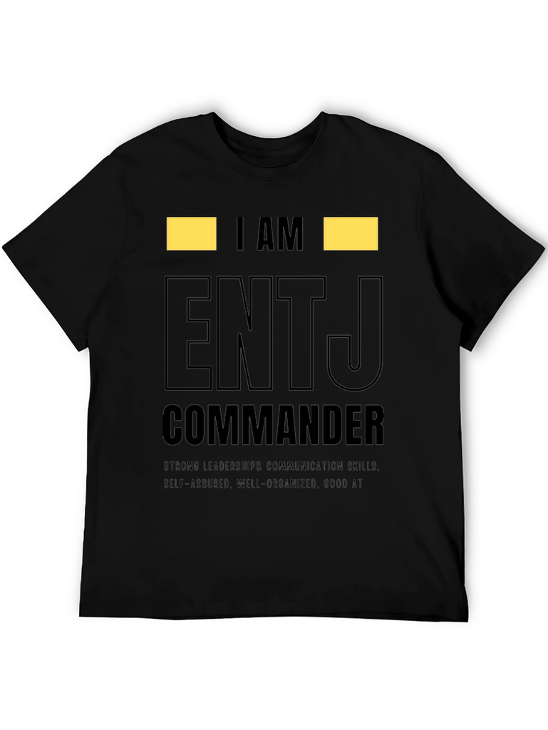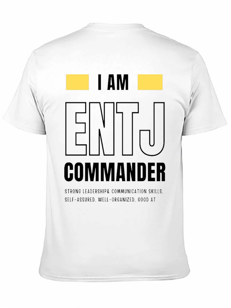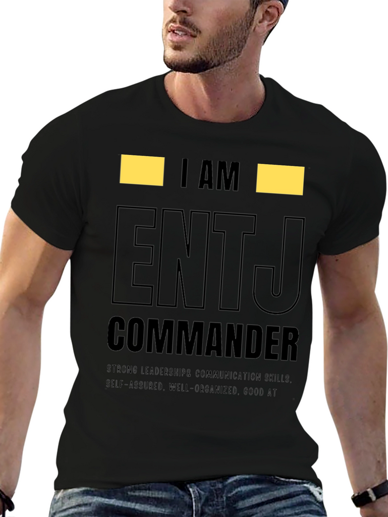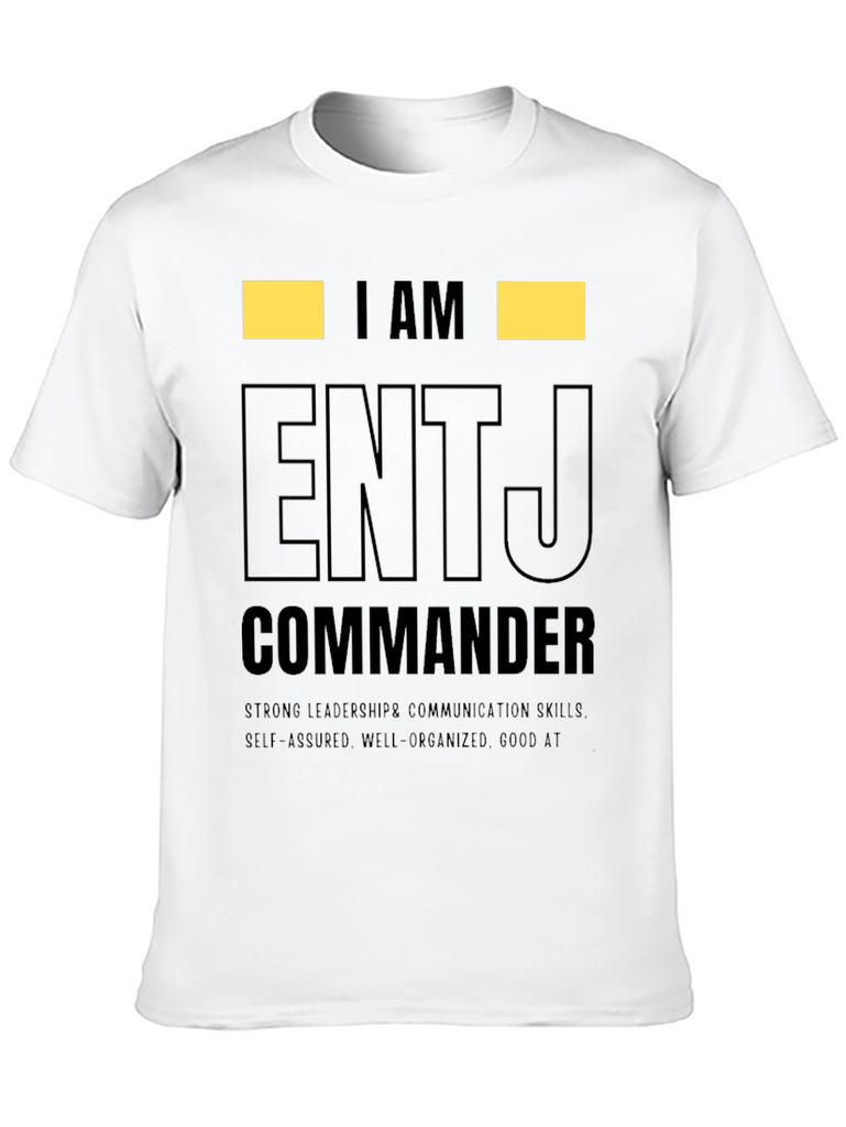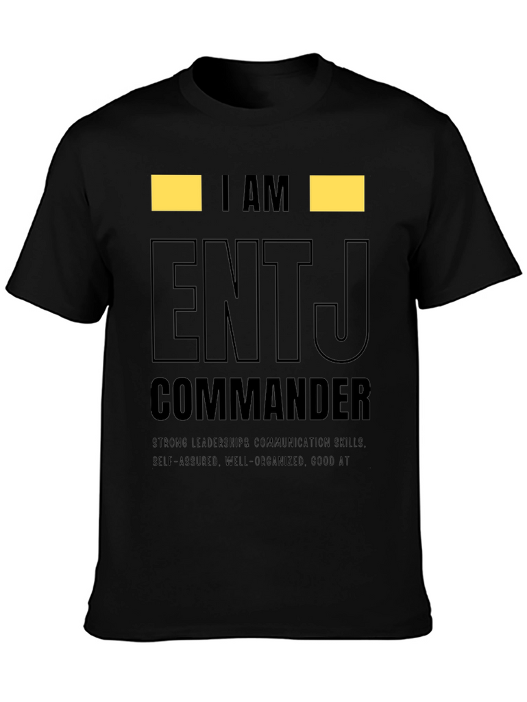 Show off your personality with this ENTJ Commander t-shirt. This tee features the text "I AM ENTJ COMMANDER" in a bold, eye-catching design. Made from comfortable material, this shirt is perfect for everyday wear and showcasing your strong leadership and communication skills. The shirt also highlights self-assured, well-organized traits, and being good at what you do. Ideal for ENTJs who want to express their personality type with pride. Wear it casually or gift it to an ENTJ friend! This tee makes a statement.