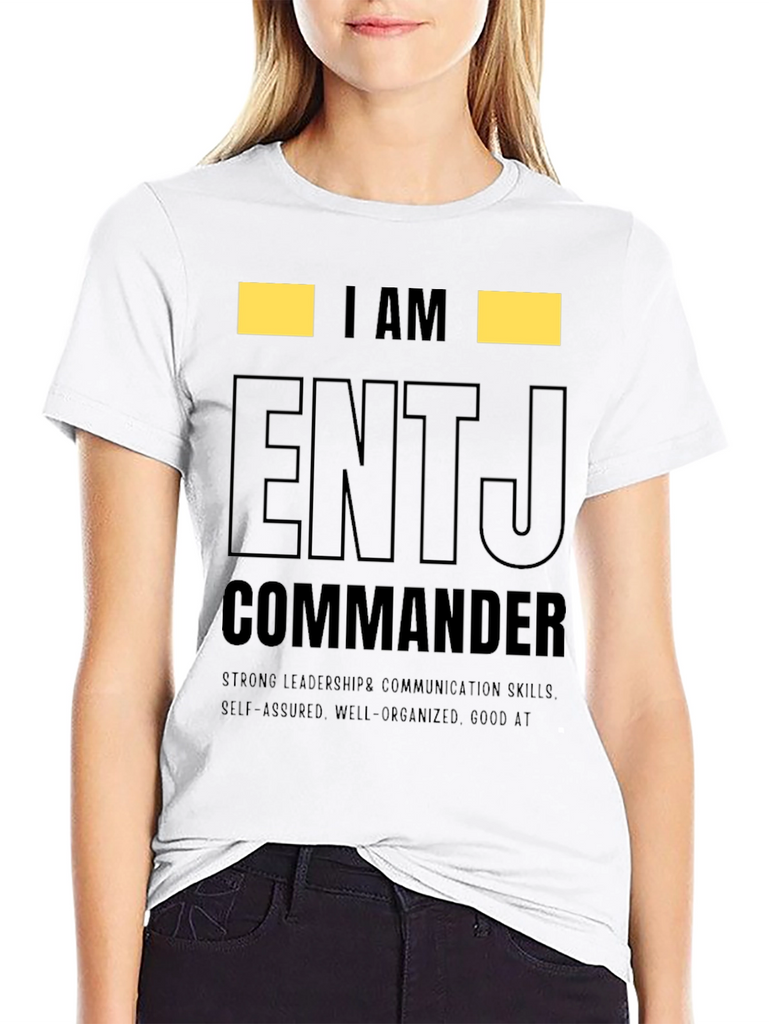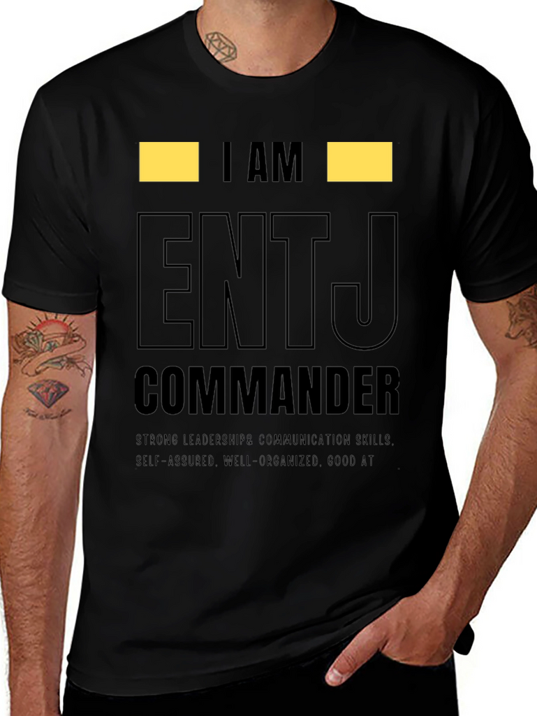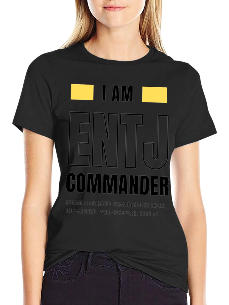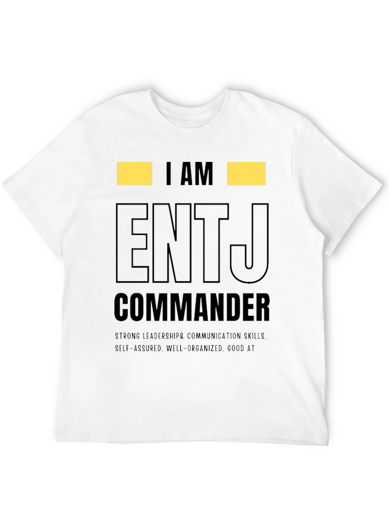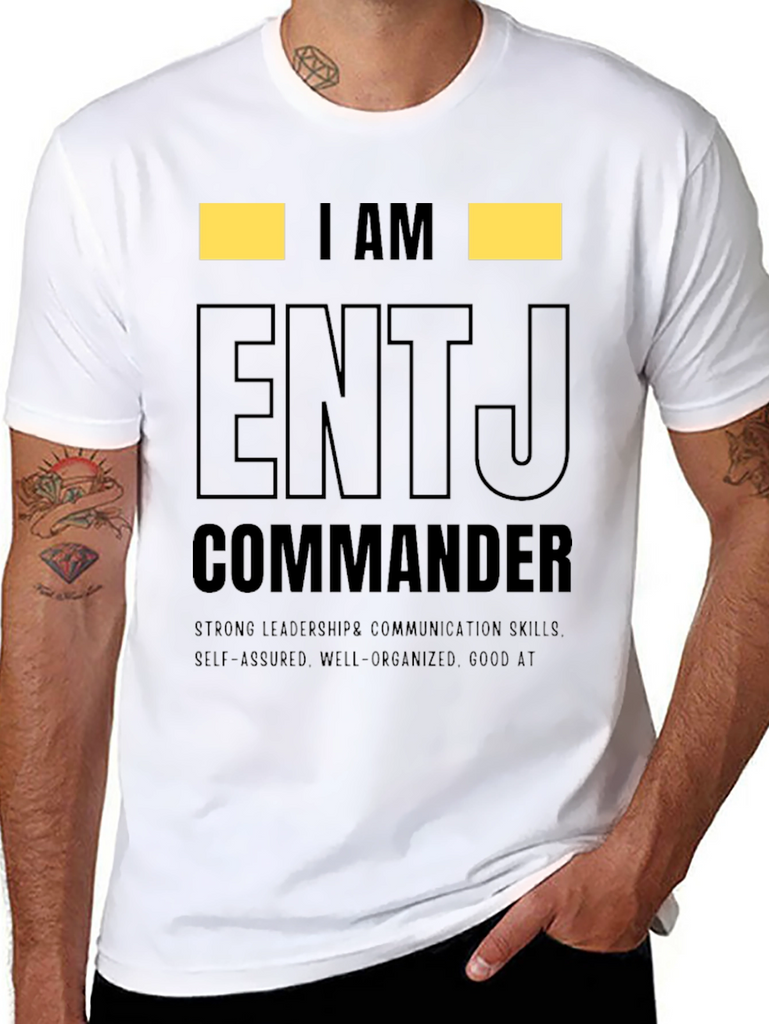 Show off your personality with this ENTJ Commander t-shirt. This tee features the text "I AM ENTJ COMMANDER" in a bold, eye-catching design. Made from comfortable material, this shirt is perfect for everyday wear and showcasing your strong leadership and communication skills. The shirt also highlights self-assured, well-organized traits, and being good at what you do. Ideal for ENTJs who want to express their personality type with pride. Wear it casually or gift it to an ENTJ friend! This tee makes a statement.