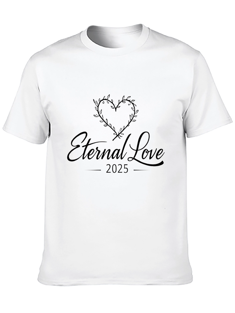 Showcase your love with this timeless "Eternal Love 2025" T-shirt! This classic black tee features a delicate heart design crafted from intertwined vines, symbolizing everlasting affection. The elegant script and subtle "2025" detail add a personal touch, making it perfect for commemorating a special year. Made from a soft, comfortable fabric, this shirt is ideal for everyday wear or a thoughtful gift for a loved one. Celebrate your eternal love in style with this unique and meaningful tee.
