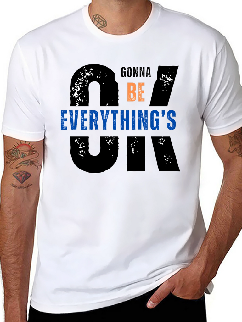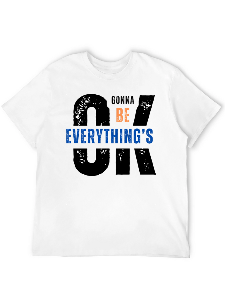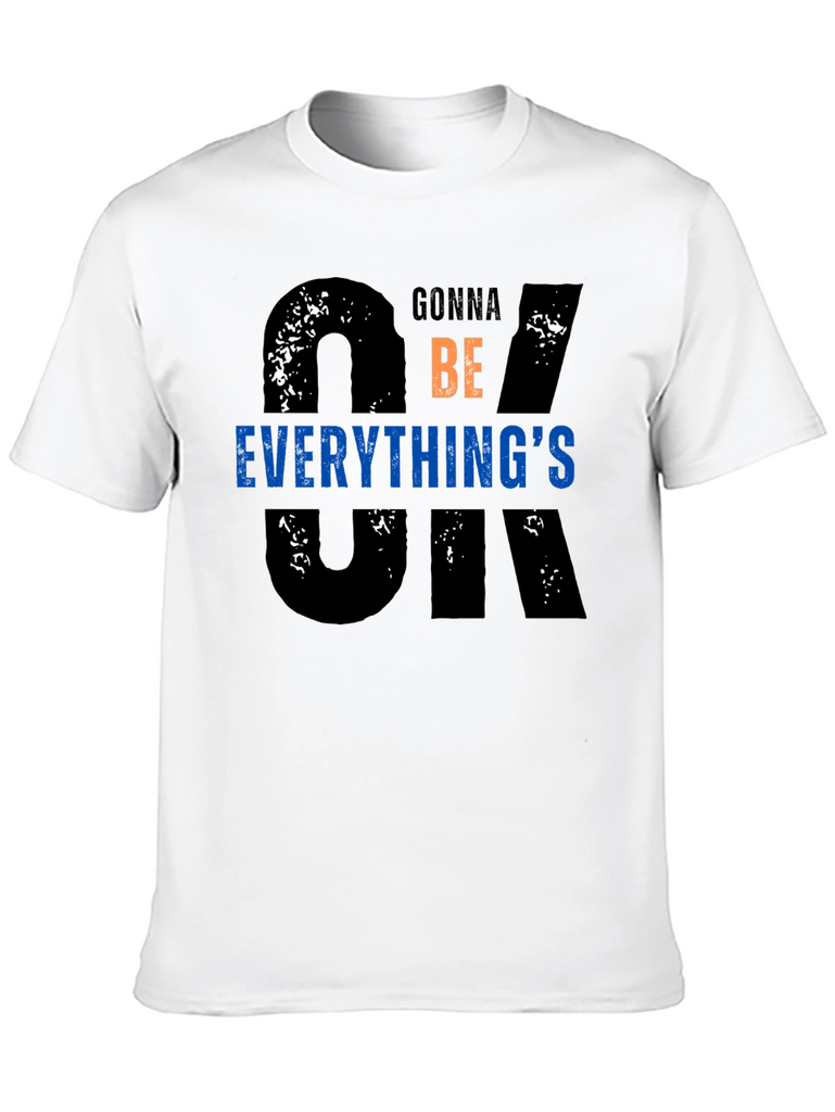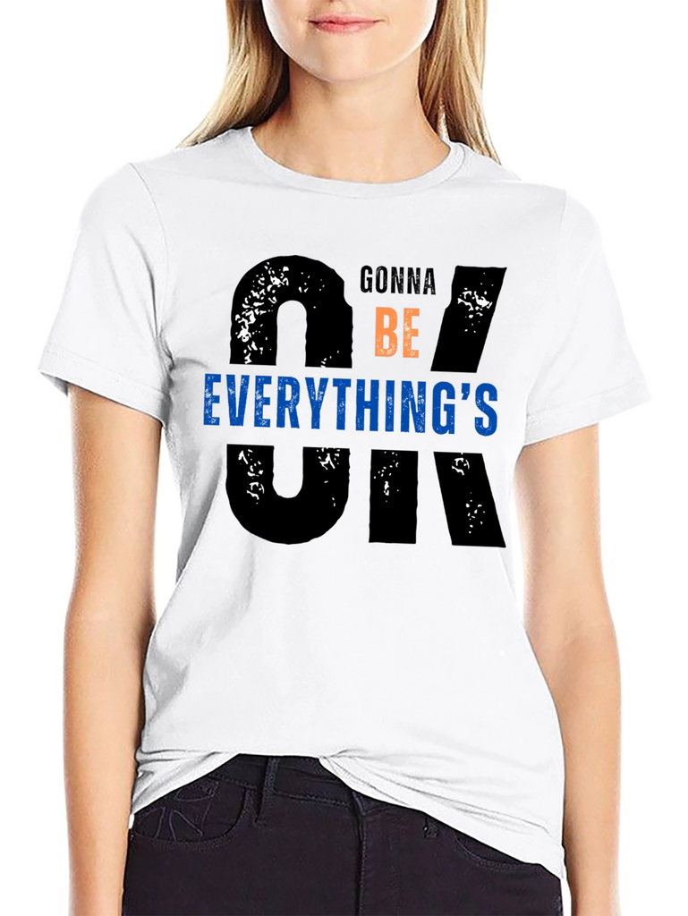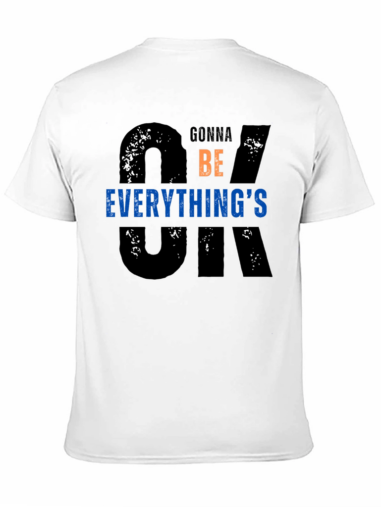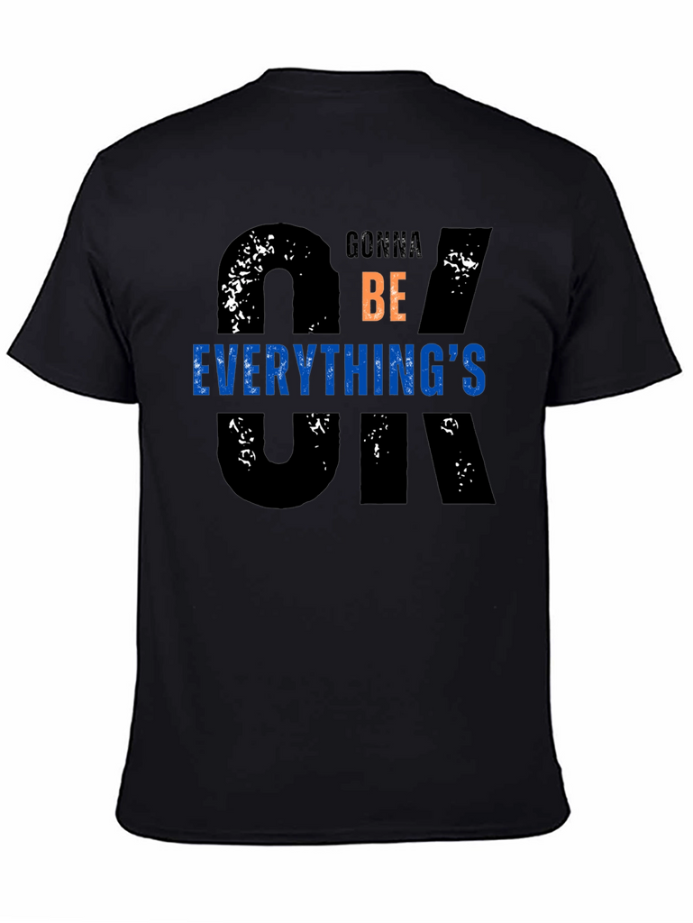 This black t-shirt features a bold and modern graphic design. The words "Gonna Be EVERYTHING'S OK" are printed in a distressed style, with "BE" in a contrasting color. The design exudes a casual yet confident vibe. Made from a soft, breathable fabric, this tee is perfect for everyday wear. Pair it with jeans or shorts for a relaxed look. Show off your positive attitude and trendy style with this unique t-shirt!