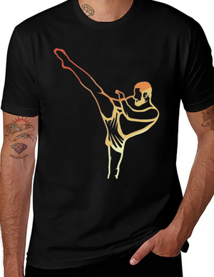 Show off your passion for martial arts with this stylish black t-shirt. The shirt features a unique design depicting the evolution of man leading to a martial artist in action. The 'EVOLUTION' text is displayed in a cool, retro font. Made from a soft, comfortable fabric, this tee is perfect for casual wear or as a statement piece at the gym. Great gift for martial arts enthusiasts or anyone with a sense of humor. Stand out and express your love for the art of combat with this awesome tee.