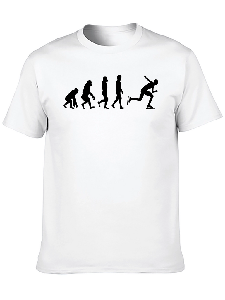 Show off your love for speed skating with this unique black t-shirt. Made from a comfortable, soft fabric, this shirt features a creative graphic of the evolution of man culminating in a speed skater. The solid black color makes it a versatile piece, easily paired with jeans, shorts, or athletic wear. Perfect for skaters, sports enthusiasts, or anyone with a quirky sense of style. Whether you're hitting the rink, training, or just hanging out, this t-shirt is a great way to express your passion for the sport.