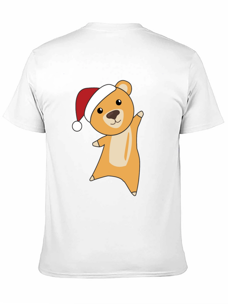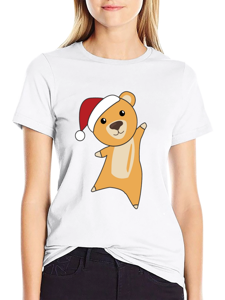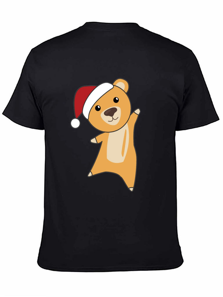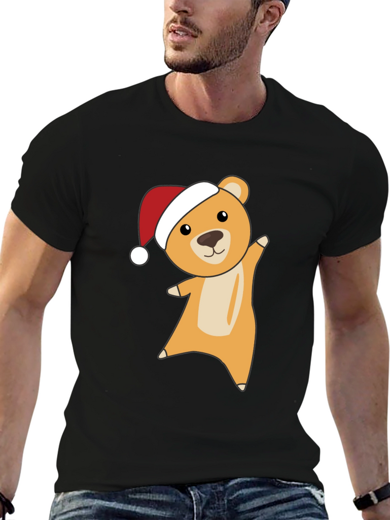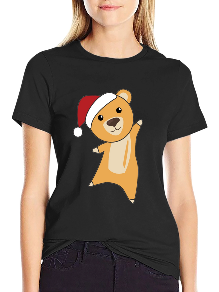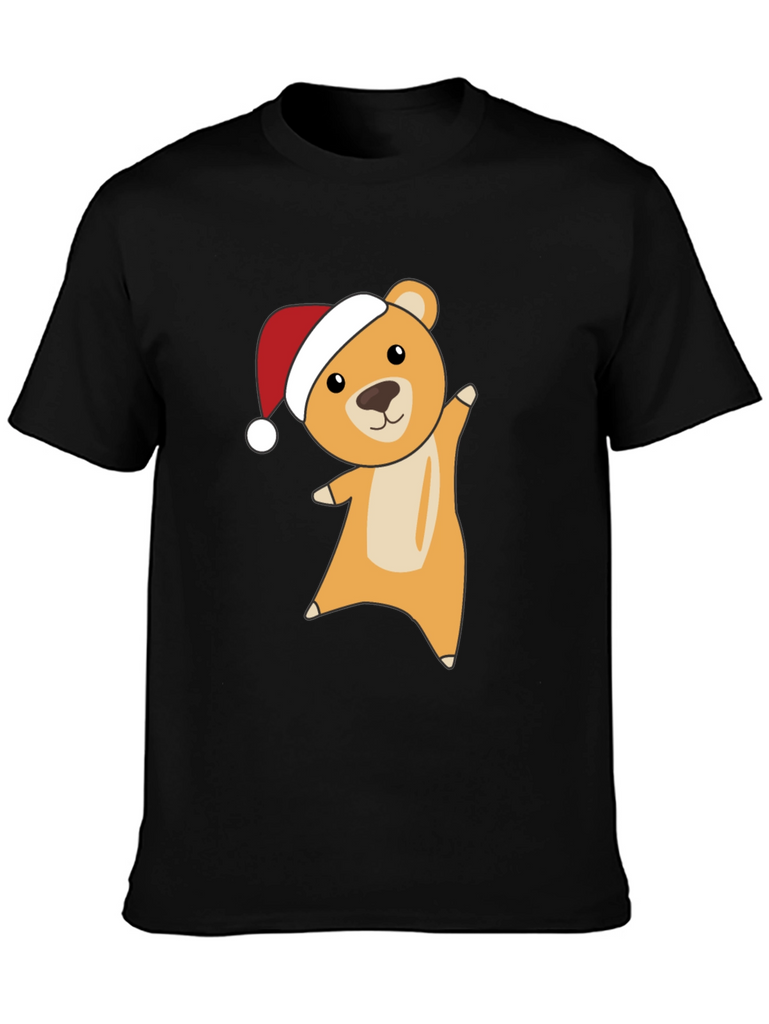 Spread holiday cheer with this adorable black t-shirt featuring a cute bear wearing a Santa hat. The whimsical design is perfect for the Christmas season, adding a touch of fun to your wardrobe. Made from comfortable, breathable fabric, this t-shirt is ideal for casual wear, holiday parties, or cozy nights by the fire. The bear's cheerful pose and vibrant colors make it a standout piece. This tee is sure to bring a smile to everyone's face and make a great gift for bear and Christmas lovers alike. Get yours today and embrace the festive spirit!