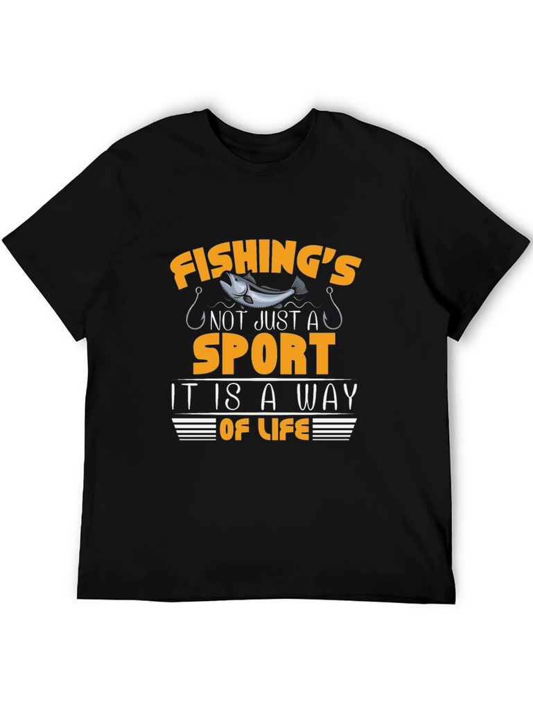 Showcase your love for angling with this stylish black t-shirt featuring a unique "Fishing's Not Just a Sport It Is A Way Of Life" graphic. The design incorporates a detailed fish illustration and fishing hooks, appealing to fishing enthusiasts. Made from a comfortable fabric blend, this tee is perfect for everyday wear, fishing trips, or casual outings. Its bold design makes a statement, expressing your passion for fishing wherever you go. Get yours today and let everyone know that fishing is more than just a hobby, it's a lifestyle.