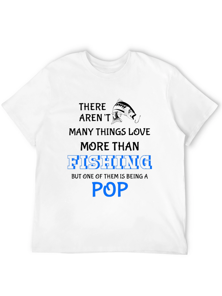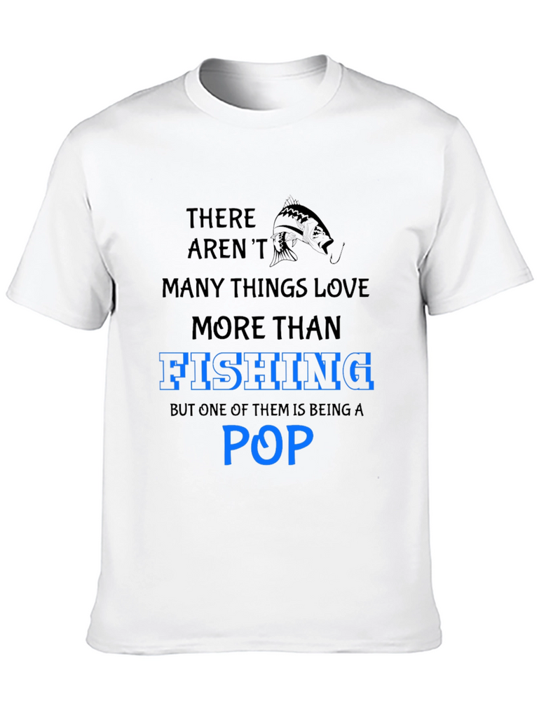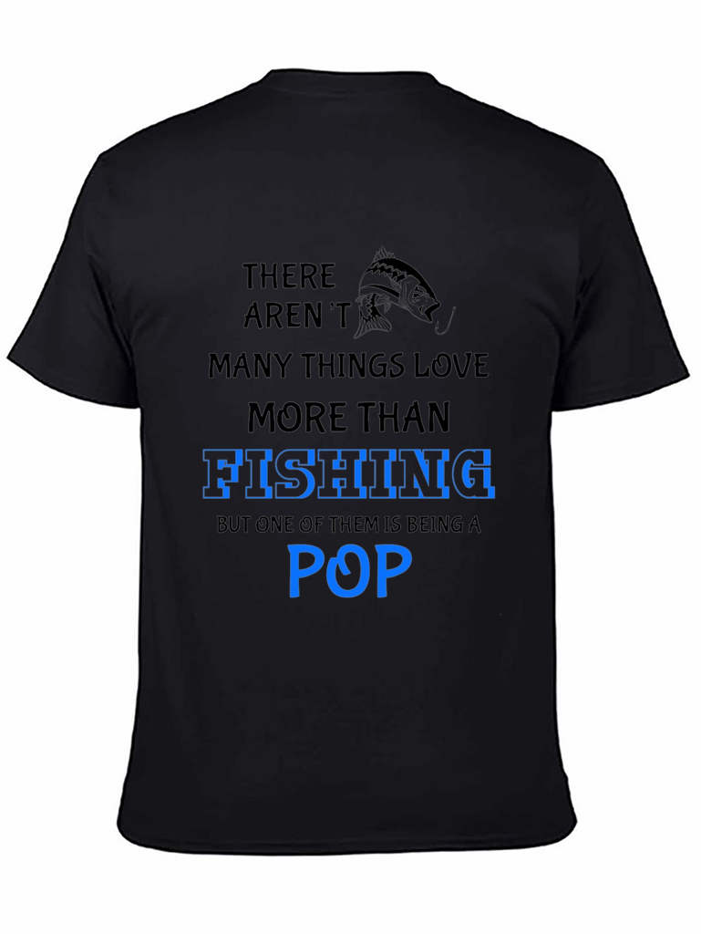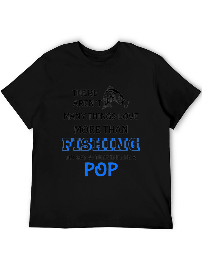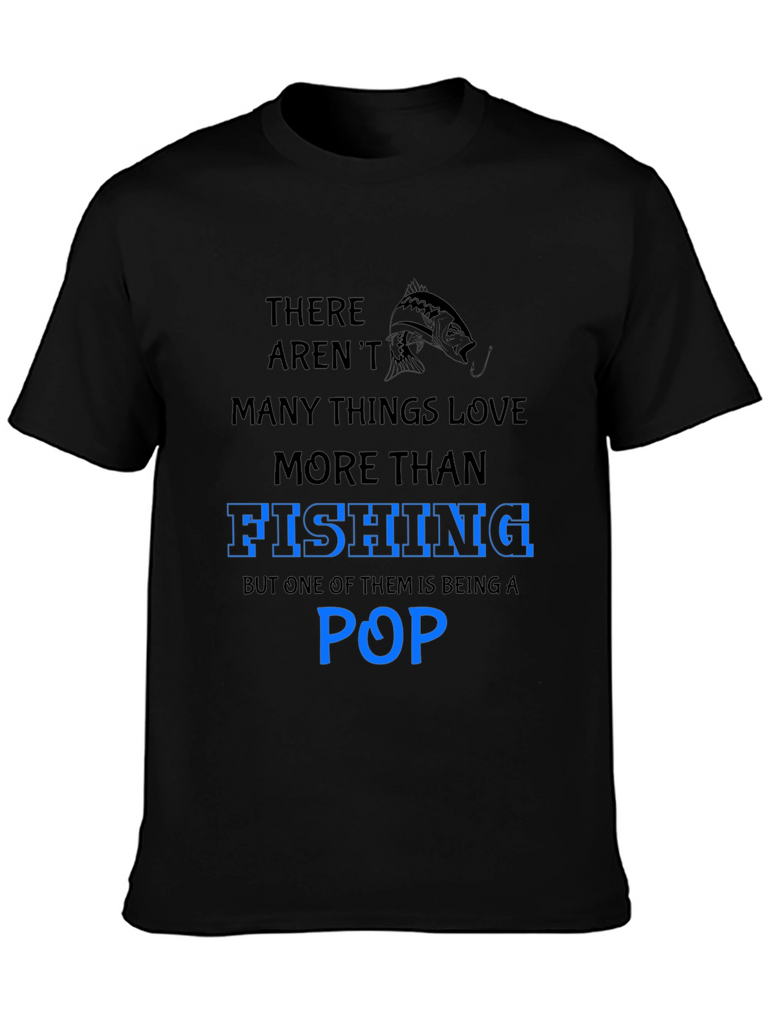 Show your love for fishing and being a "Pop" with this unique t-shirt. This eye-catching black tee features bold blue text that reads "FISHING" and "POP," alongside other text in black. The design includes a detailed graphic of a fish, perfect for anglers and proud fathers. Made from a comfortable-looking fabric, this shirt is ideal for casual wear, fishing trips, or family gatherings. The shirt's message is clear: "There aren't many things I love more than fishing, but one of them is being a Pop." This makes it a great gift for Father's Day, birthdays, or any occasion to celebrate a fishing-loving dad.