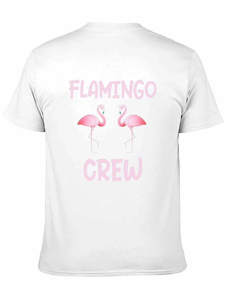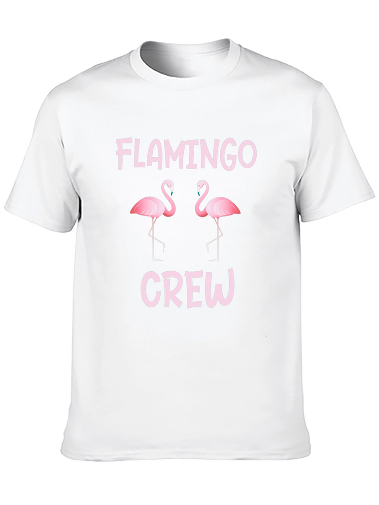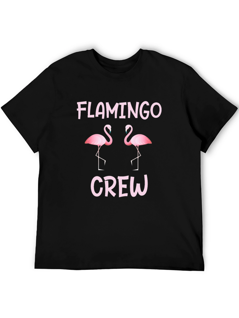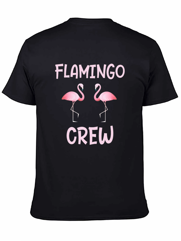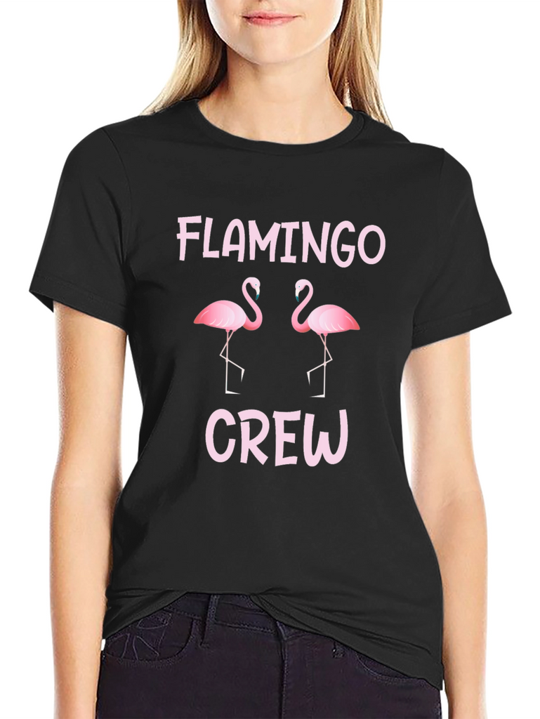 Show your love for flamingos with this stylish black t-shirt. This tee features a playful design with two adorable pink flamingos, framed by the words "FLAMINGO CREW" in a matching pink font. Made from a comfortable, breathable fabric, this t-shirt is perfect for casual wear, themed parties, or vacations. It's a fun and unique way to express your personality and stand out from the crowd. Pair it with your favorite jeans or shorts for a relaxed and trendy look. Ideal for flamingo enthusiasts and anyone looking to add a touch of whimsy to their wardrobe.