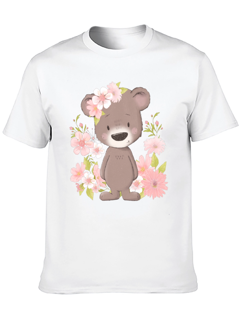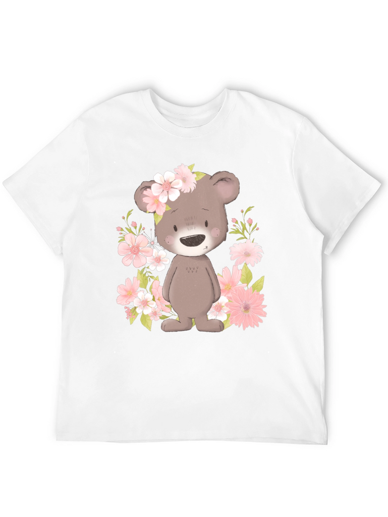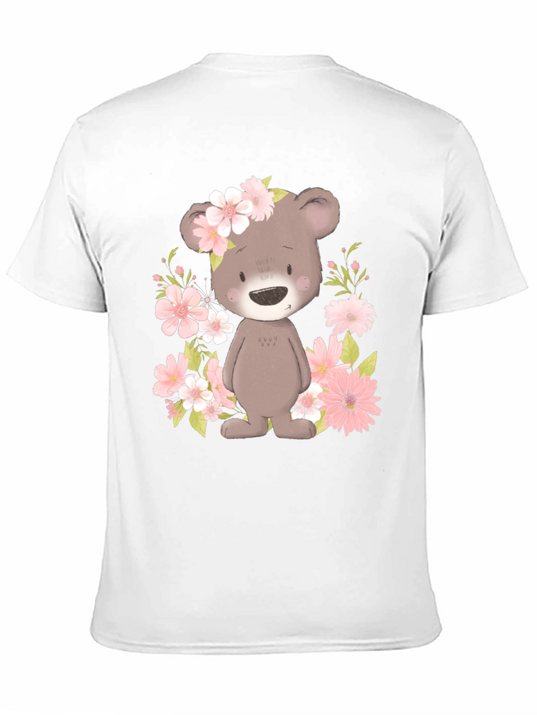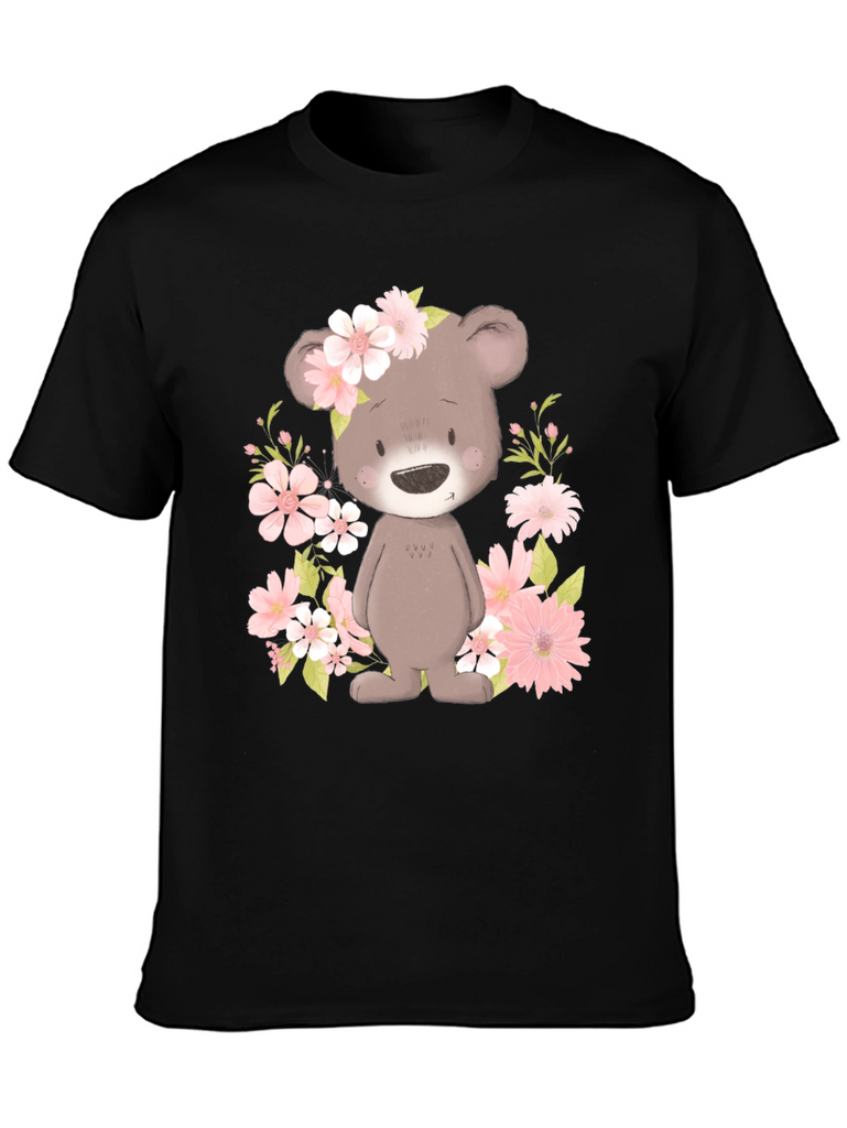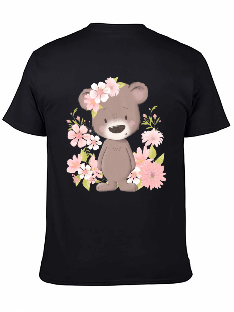 Embrace the charm of our Floral Bear Graphic Tee. This adorable black t-shirt features a delightful bear graphic surrounded by pink flowers, creating a whimsical and eye-catching design. The soft fabric offers exceptional comfort, making it perfect for everyday wear. Show off your unique style and spread smiles wherever you go with this playful and trendy tee! Dress it up or dress it down, this tee is a versatile choice for casual outings, parties, or simply relaxing at home. Get ready to receive compliments on your fashionable and fun-loving look!