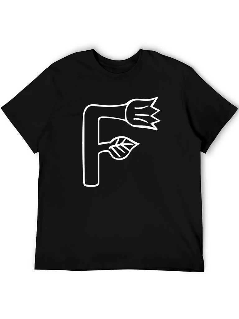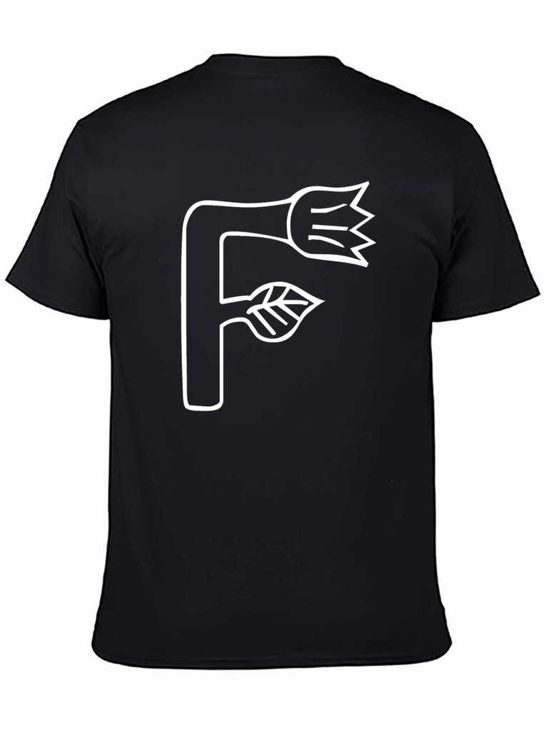 Elevate your casual wardrobe with this stylish black t-shirt. Featuring a unique graphic design that combines the letter "F" with elegant floral elements, this tee is a standout piece. The crisp white outline of the design pops against the deep black fabric, creating a modern and eye-catching look. Made from a comfortable and breathable fabric, this t-shirt is perfect for everyday wear. Pair it with jeans for a relaxed weekend outfit or dress it up with chinos for a more polished look. Its unique design makes it a great conversation starter and a must-have for anyone looking to add a touch of sophistication to their casual style. Express your personality with this floral-inspired graphic tee!