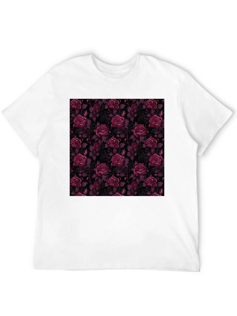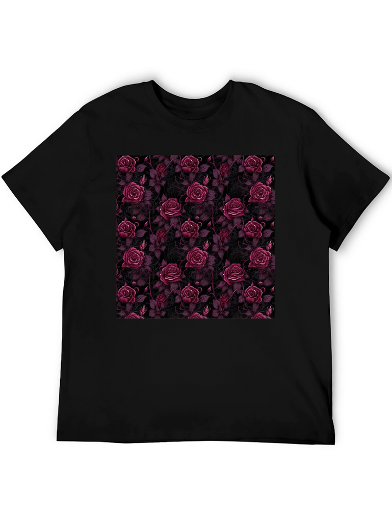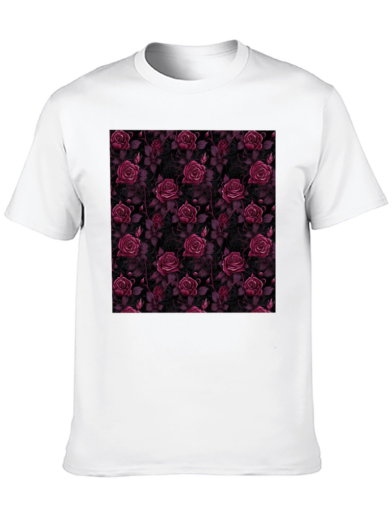 Embrace a touch of dark romance with this eye-catching t-shirt! Featuring a detailed, all-over print of deep red and purple roses against a dark background, this tee offers a unique and stylish look. The design exudes elegance and edginess, making it perfect for those who want to stand out from the crowd. Made from a soft, breathable fabric, this t-shirt is comfortable for everyday wear. Whether you're heading to a concert, a casual hangout, or just want to express your individual style, this floral rose t-shirt is an excellent choice. Pair it with jeans, leggings, or a skirt for a versatile and fashionable ensemble.