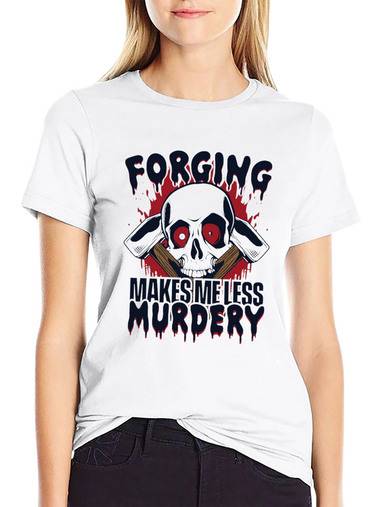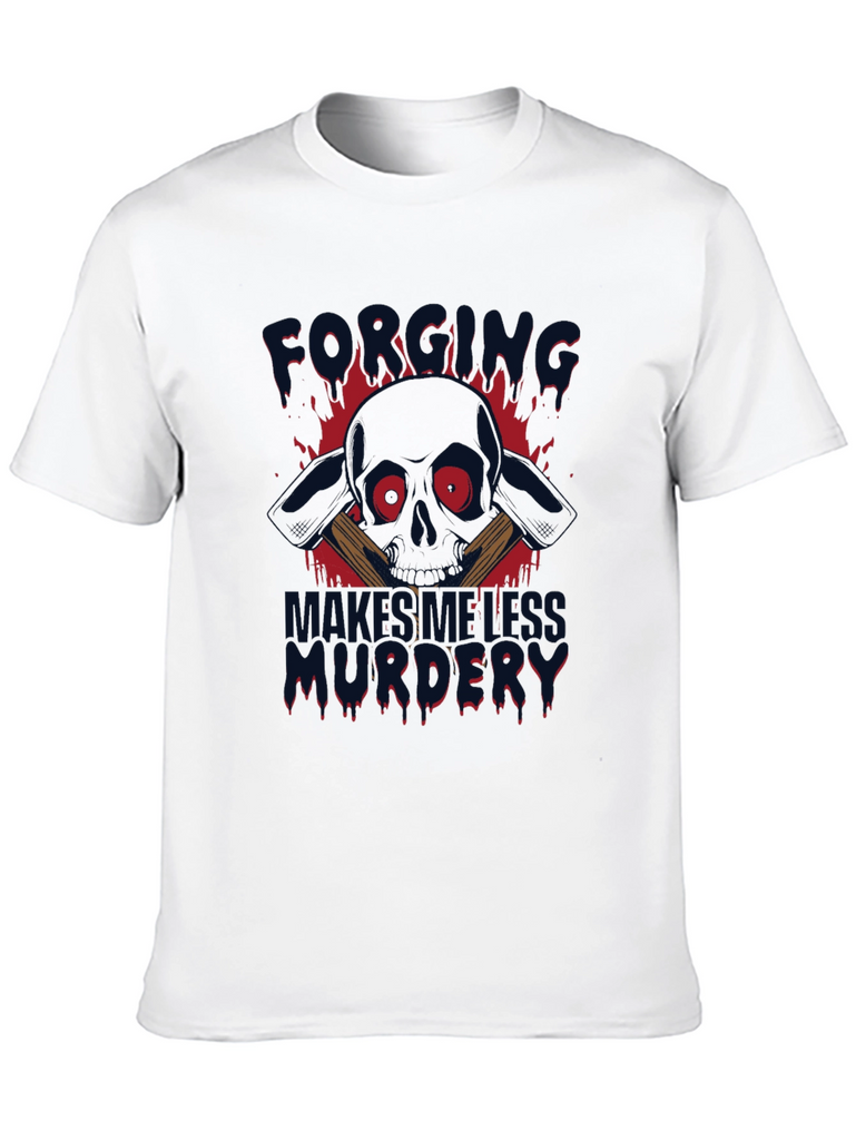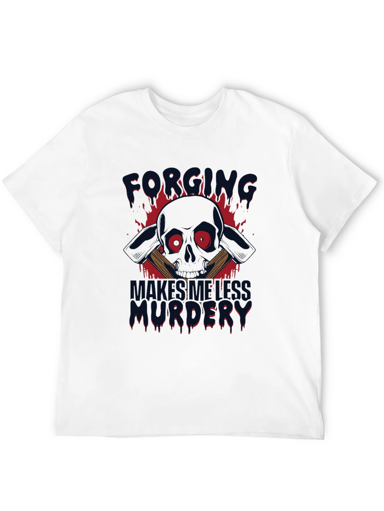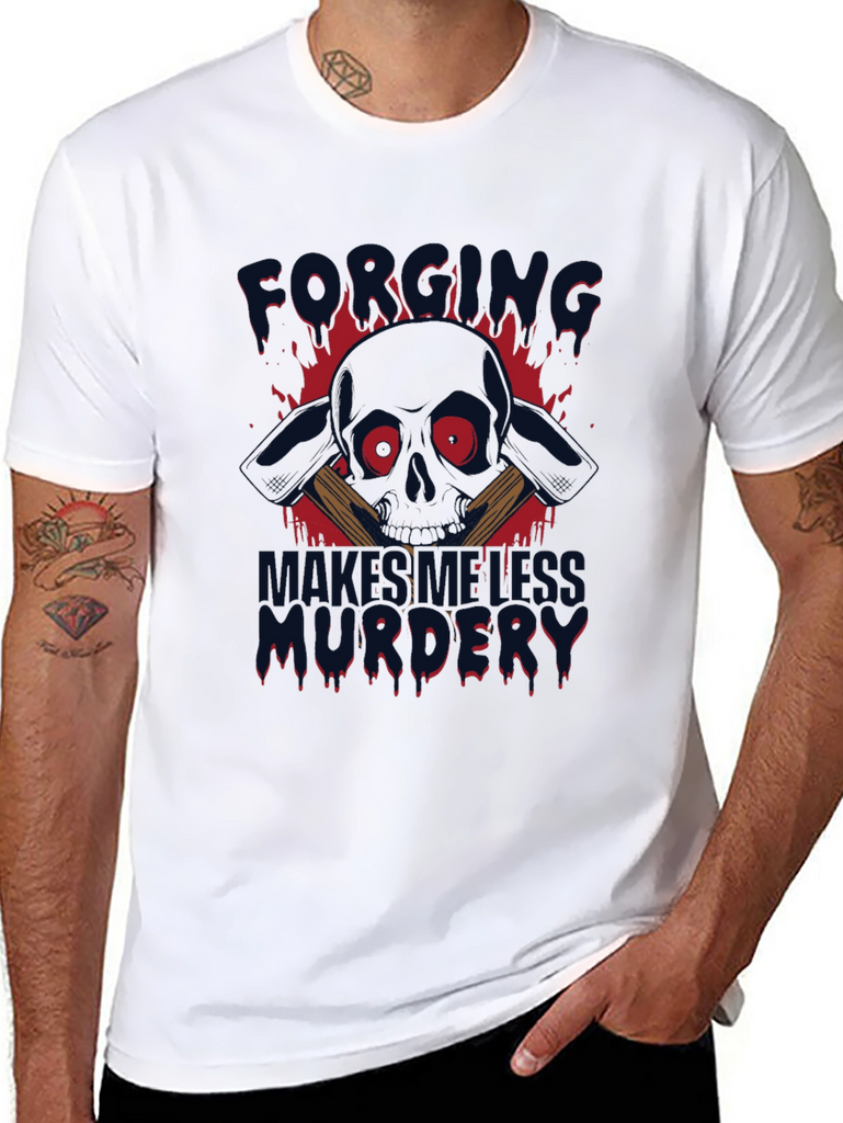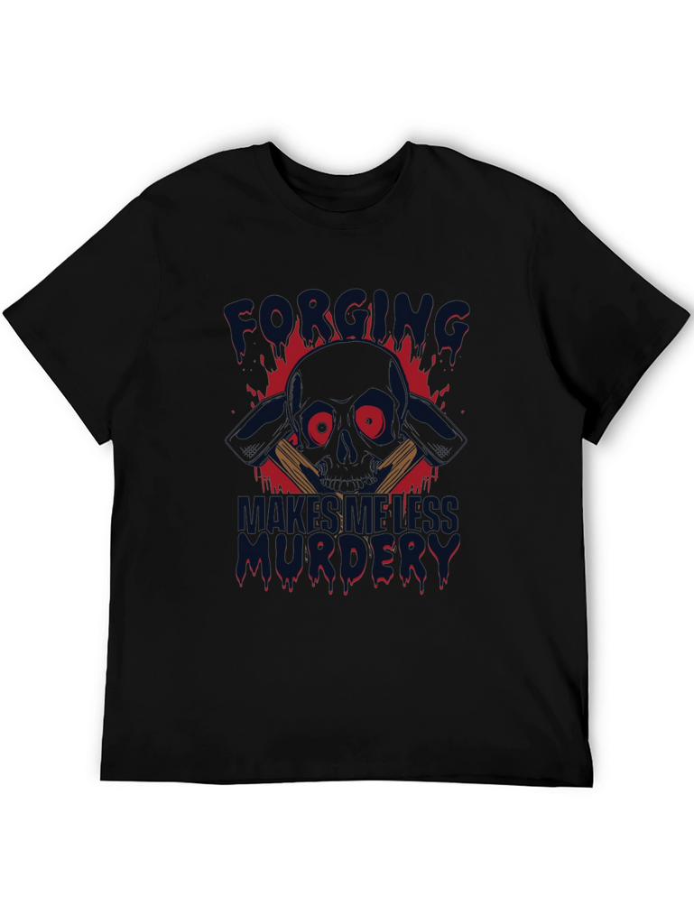 This black graphic t-shirt features a striking design with the words "FORGING MINDS SLEEVELESS MURDER" surrounding a stylized skull. The text and skull are rendered with a unique dripped blood effect in red, creating a bold and edgy aesthetic. Made from a comfortable fabric, this tee is perfect for casual wear, concerts, or making a statement. The classic crew neck and short sleeves make it a versatile addition to any wardrobe. Stand out from the crowd with this eye-catching and memorable design.