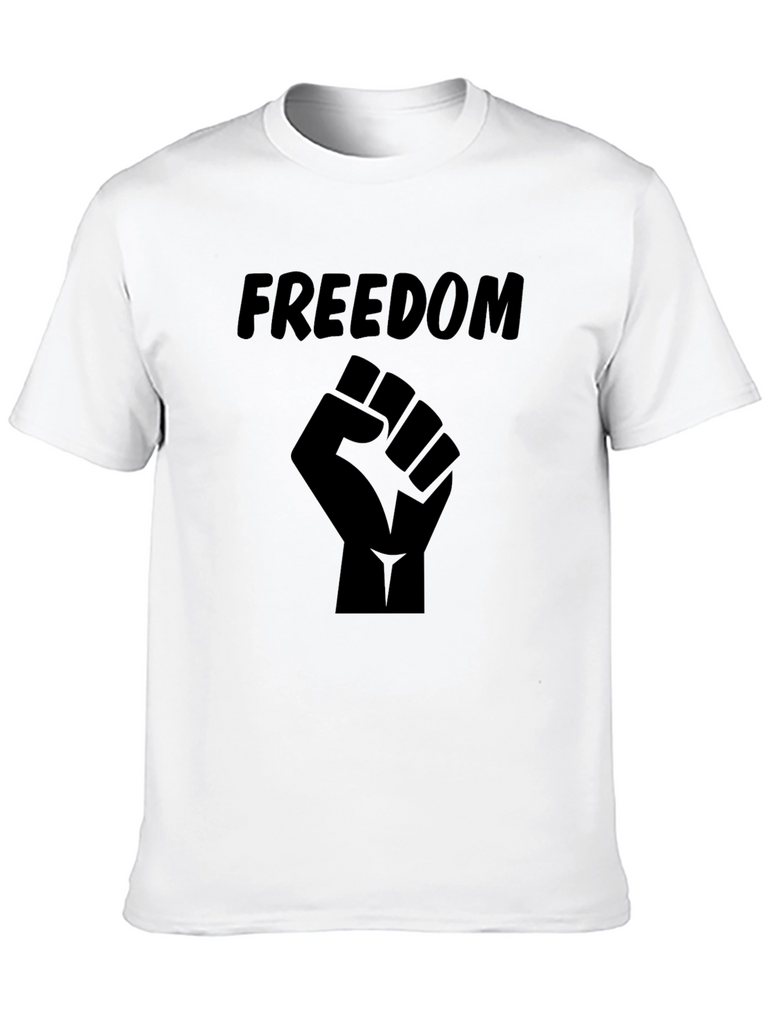 Make a statement with this bold, black t-shirt featuring a powerful raised fist graphic and the word "FREEDOM" prominently displayed. Crafted from a soft and comfortable material, this tee offers a relaxed fit for all-day wear. The impactful design ensures you'll stand out while expressing your values. Perfect for rallies, casual outings, or making a statement, this shirt is an ideal addition to your wardrobe. Showcase your commitment to freedom and justice with this eye-catching tee. Get yours today and wear your voice!