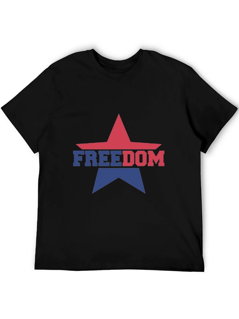 Show your love for freedom with this eye-catching graphic t-shirt! This black tee features a bold, red and blue star design with the word "FREEDOM" emblazoned across the center. The star's upper portion is red, while the lower half is blue, creating a striking contrast. Made from what appears to be a soft and comfortable cotton blend, this shirt offers a relaxed fit perfect for everyday wear. Ideal for casual outings, patriotic holidays like the 4th of July, or simply expressing your values, this t-shirt is sure to make a statement. Pair it with jeans, shorts, or khakis for a versatile and stylish look. Get yours today and wear your freedom proudly!