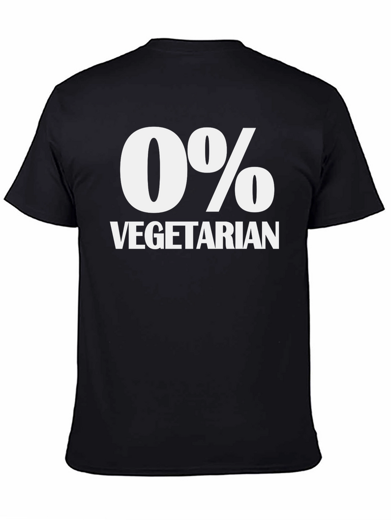 This bold black t-shirt makes a statement with its humorous declaration: '0% VEGETARIAN' printed in large, white, block letters. The design is simple yet eye-catching, perfect for those who enjoy a good laugh and aren't afraid to show off their love for meat. Crafted from what appears to be a soft and comfortable cotton blend, this tee is ideal for casual wear, gatherings, or as a gag gift for the carnivore in your life. Whether you're at a barbecue, a restaurant, or just hanging out, this t-shirt is sure to spark conversation and bring a smile to those around you. Make a bold, funny statement with this 0% Vegetarian tee!