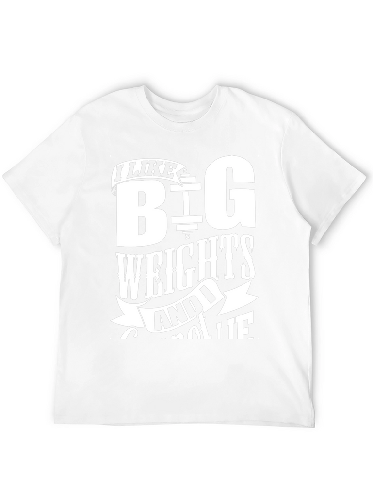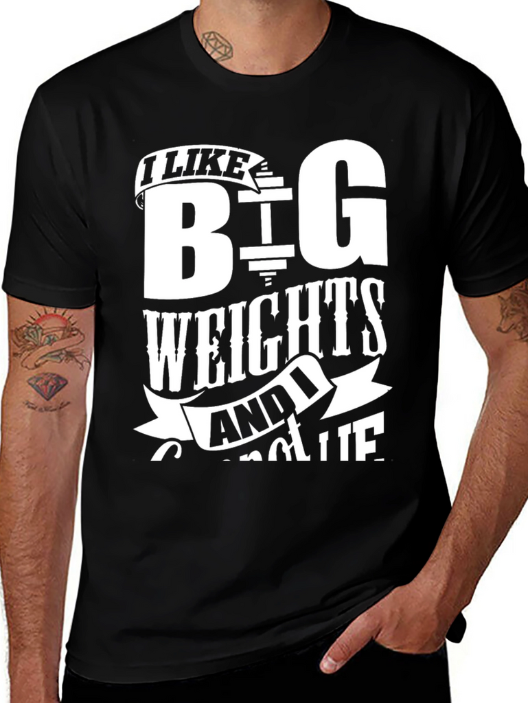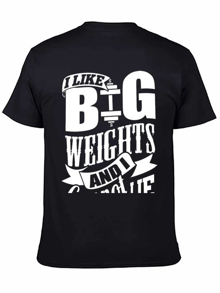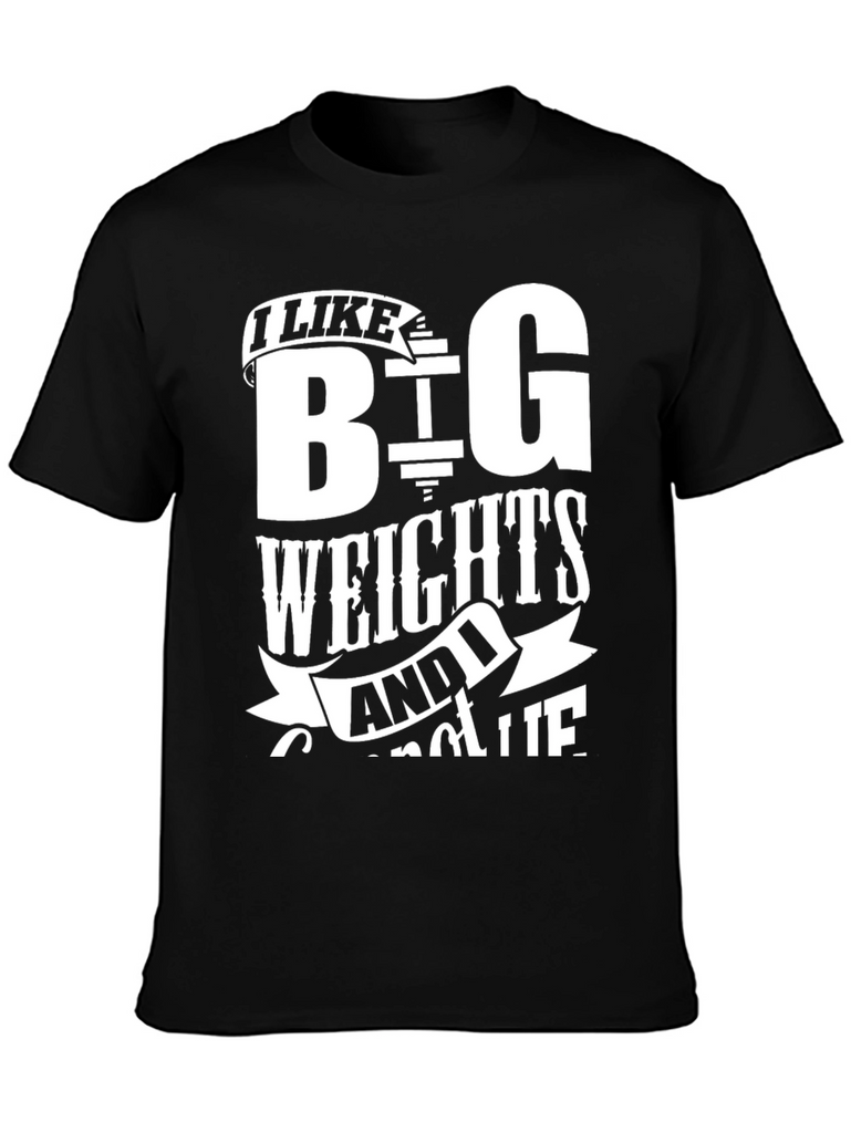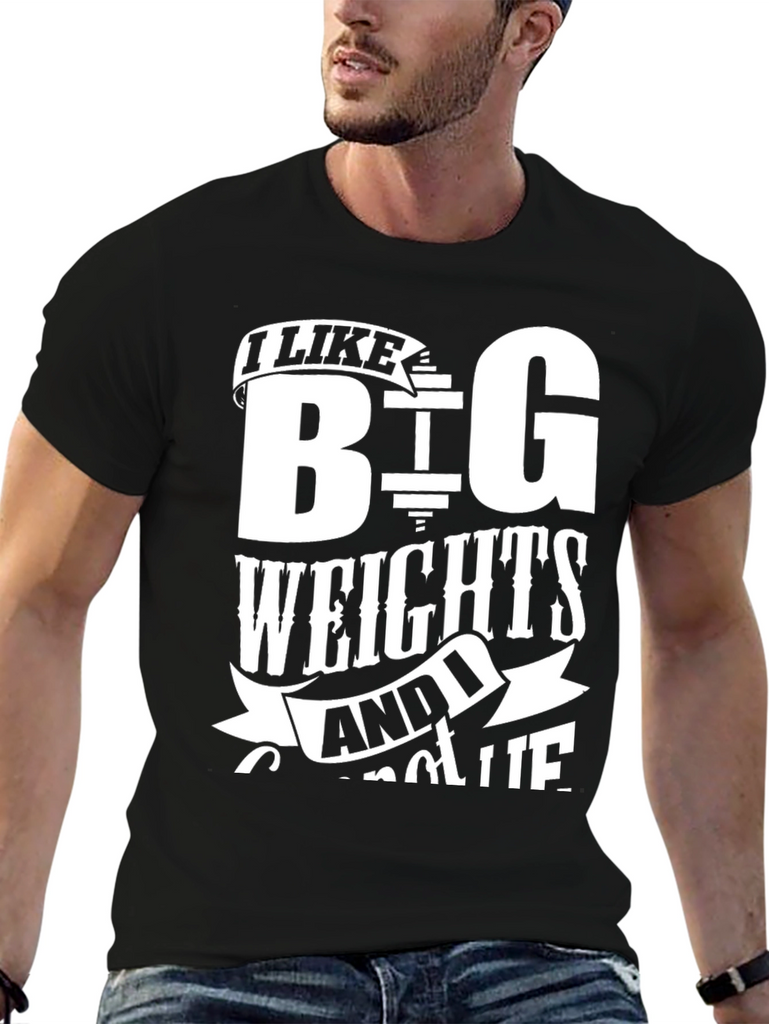 Show off your love for lifting with this bold black t-shirt. Featuring a white graphic print, the shirt reads "I LIKE BIG WEIGHTS AND I CANNOT LIE", making it a fun statement piece for any gym-goer. The classic crew neck and short sleeve design ensure a comfortable fit for workouts or casual wear. Made from soft, breathable fabric, it's perfect for hitting the weights or simply expressing your passion for fitness. Grab yours now and let everyone know you're serious about those gains!