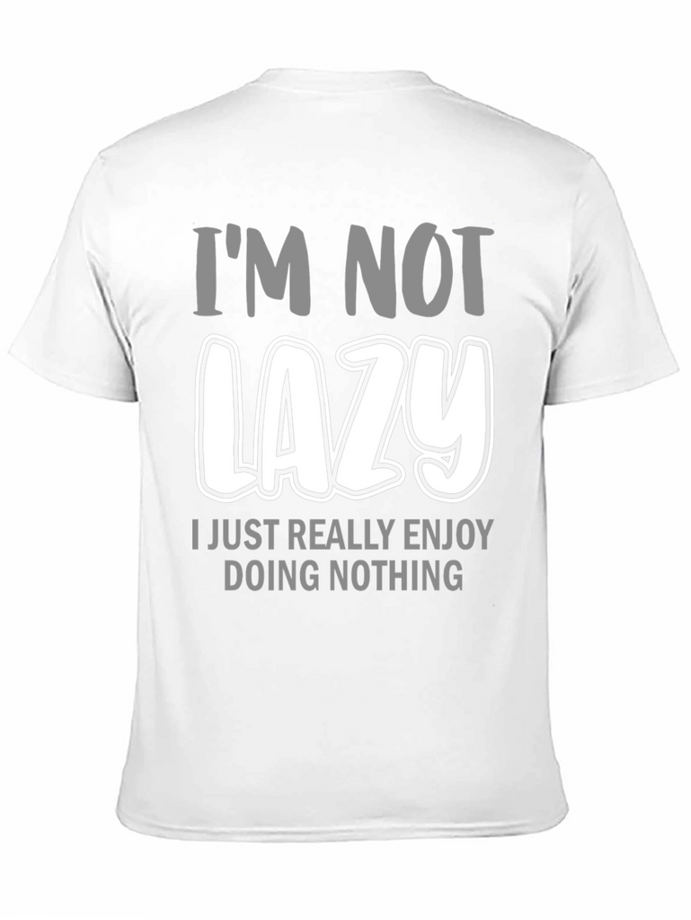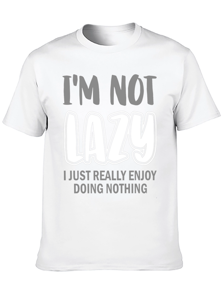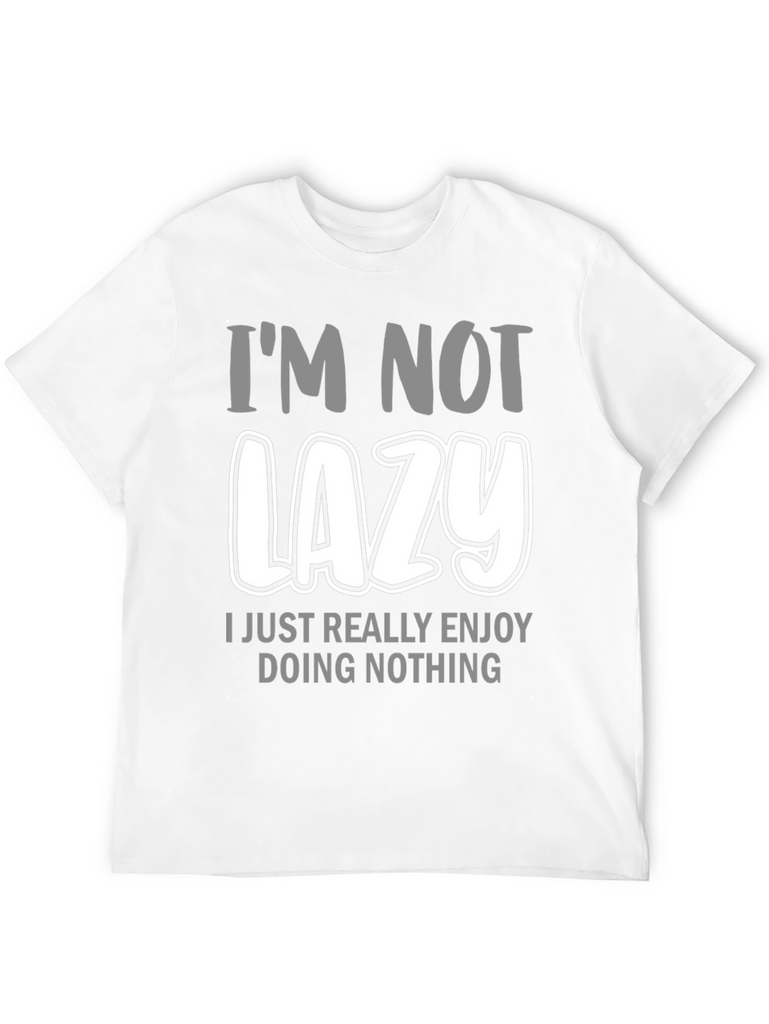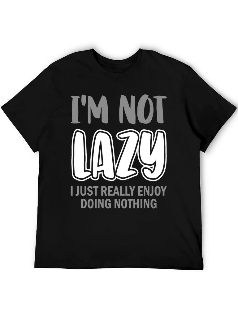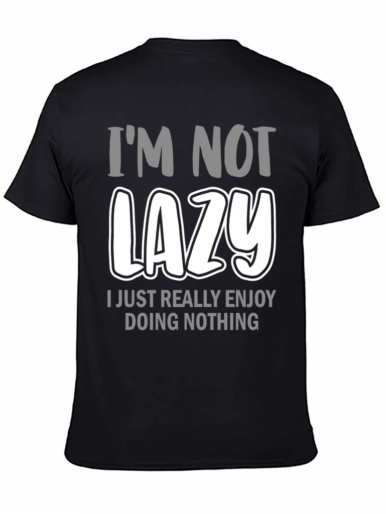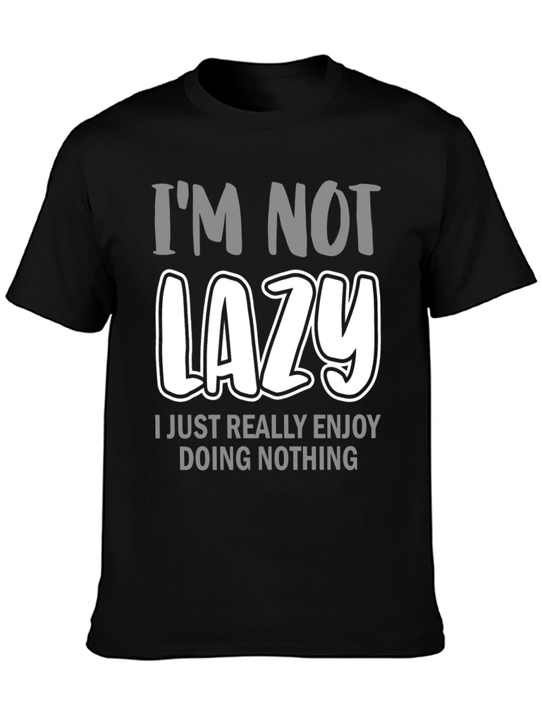 Show off your sense of humor with this funny 'I'm Not Lazy, I Just Really Enjoy Doing Nothing' t-shirt. This humorous tee is perfect for those who love a good laugh and appreciate the art of relaxation. The design features a bold and playful font, with the word "LAZY" accentuated with a white and black outline. Made from soft, breathable fabric, this shirt offers both comfort and style. Ideal for casual outings, lounging at home, or as a unique gift for friends and family, this tee is sure to bring a smile to anyone's face. Add a touch of wit to your wardrobe with this conversation-starting shirt. Available in black.