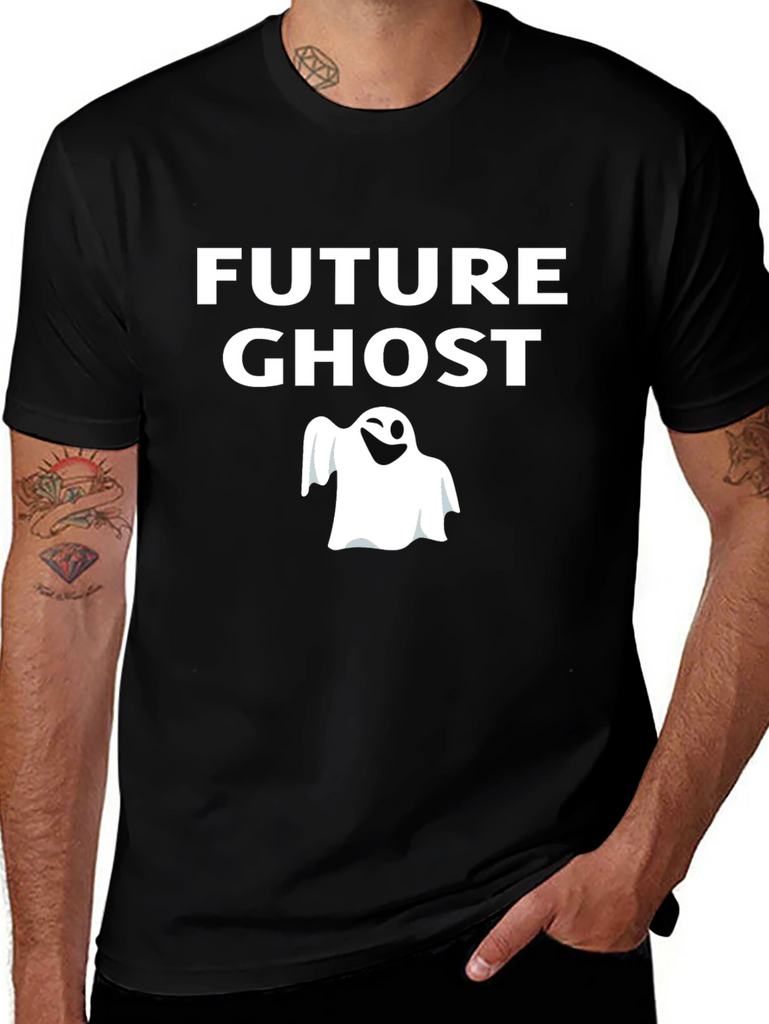 Get ready to haunt the future in style with this eye-catching black t-shirt! Featuring the bold text "FUTURE GHOST" above a playful ghost graphic, this tee is perfect for anyone with a spooky sense of humor. Made from a comfortable-looking fabric, this shirt is ideal for casual wear, Halloween parties, or expressing your unique personality. The crisp white design contrasts sharply with the black background, ensuring that you'll stand out from the crowd. Add a touch of playful morbidity to your wardrobe with this must-have graphic tee!