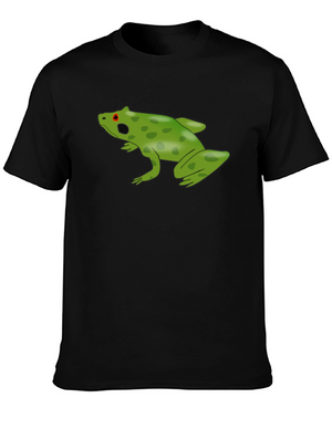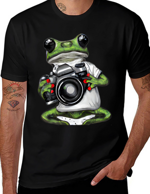 Show off your unique style with this eye-catching black t-shirt. Featuring a stylized frog silhouette filled with a mesmerizing galaxy print, this tee is sure to turn heads. The shirt appears to be made from a soft, comfortable cotton blend, perfect for everyday wear. Its relaxed fit makes it ideal for casual outings, concerts, or simply lounging at home. This t-shirt combines comfort and unique design, making it a must-have addition to any wardrobe. Express your love for nature and the cosmos with this striking graphic tee.