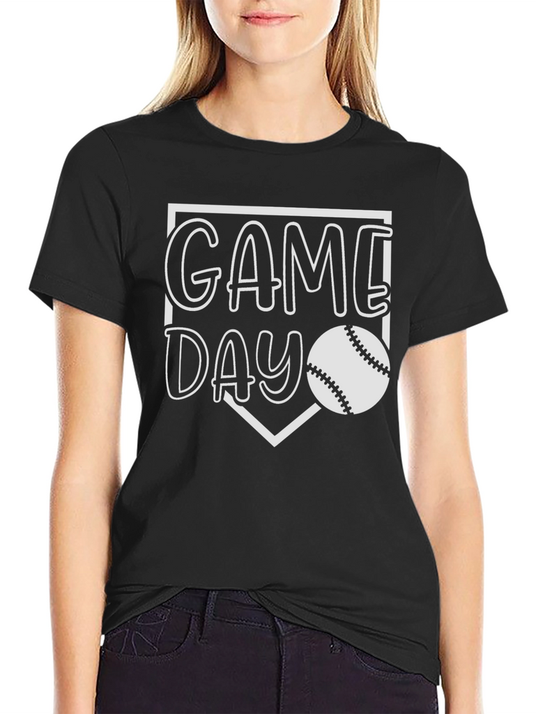 Show your love for baseball with this cool black graphic tee! The design features the phrase 'Game Day' inside of a baseball diamond with a baseball next to it. This shirt is perfect for any baseball fan. Wear it to the ballpark, to practice, or just hanging out with friends. Get ready to cheer on your favorite team in style!