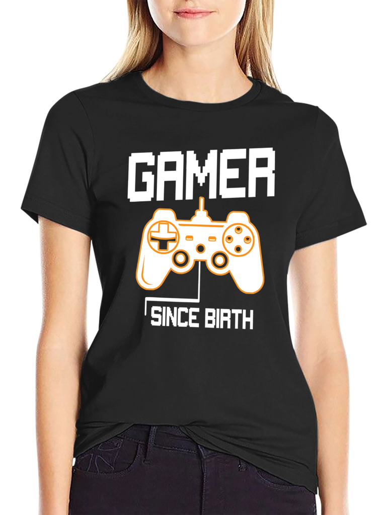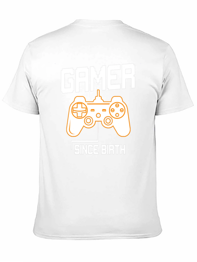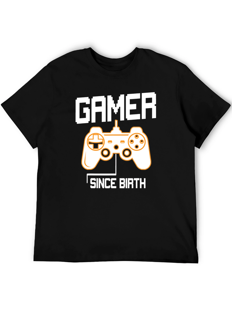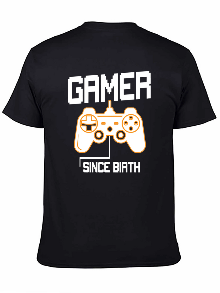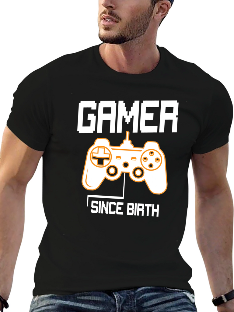 Show off your lifelong passion for gaming with this stylish black graphic t-shirt. The shirt features a classic video game controller graphic in contrasting colors, emblazoned between the words "GAMER" and "SINCE BIRTH" in a pixelated font. Made from a comfortable and breathable fabric, this tee is perfect for casual wear, gaming sessions, or as a statement piece. Ideal for gamers of all ages, this shirt makes a great gift for the video game enthusiast in your life. Grab yours today and let the world know you've been gaming since day one!