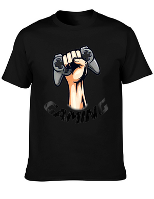 Show off your dedication with this black "Gaming Mode 100%" t-shirt. This eye-catching tee features bold, red lettering encased in a black outlined rectangle, letting everyone know you're always ready to level up. The design is printed on a comfortable, casual-fit black shirt, perfect for intense gaming sessions or relaxed everyday wear. Made from soft, breathable fabric, this t-shirt ensures all-day comfort whether you're battling online or hanging out with friends. This t-shirt makes an ideal gift for any gamer or enthusiast. Get yours now and signal that you are always in gaming mode!