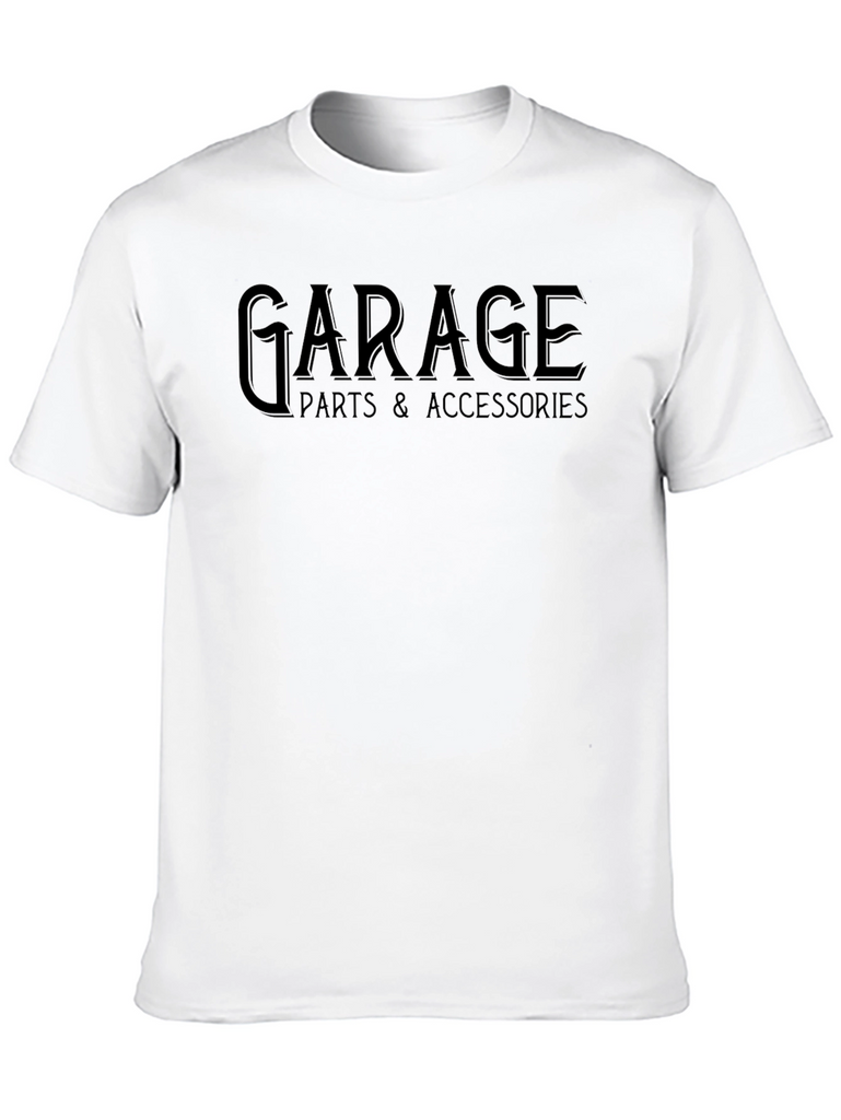 Show your love for all things automotive with this sleek black t-shirt. The shirt features the text "Garage Parts & Accessories" in a bold, vintage-inspired font across the chest. Made from a comfortable-looking fabric, this tee is perfect for everyday wear. Whether you're a car enthusiast, a mechanic, or simply appreciate the automotive world, this t-shirt is a great way to express your passion. It's also a fun and unique gift idea for the gearhead in your life. Wear it while wrenching in the garage, attending car shows, or simply hanging out with friends.