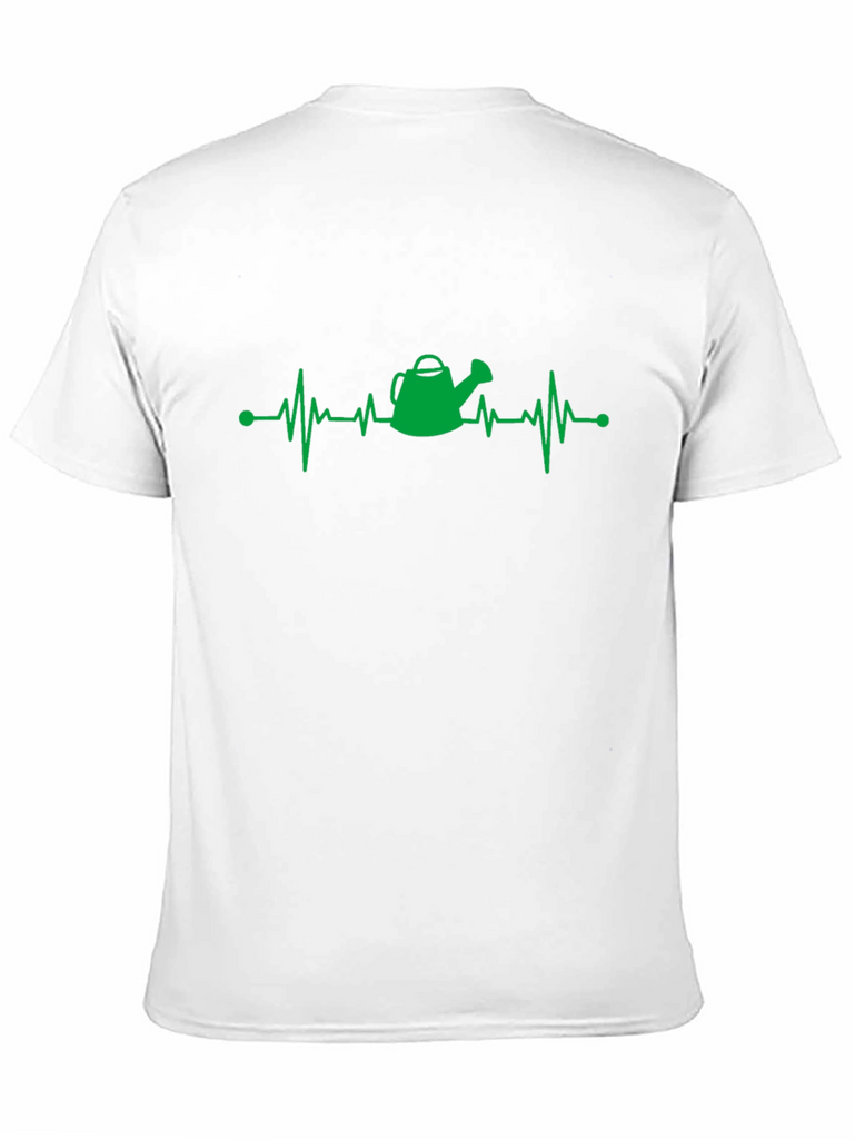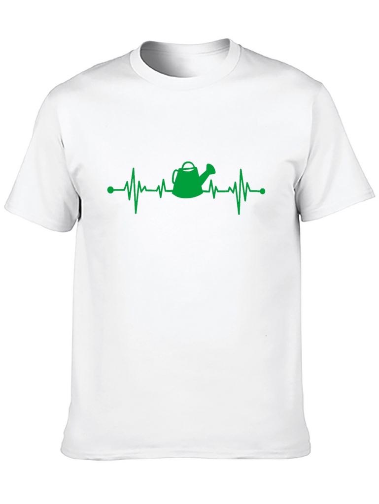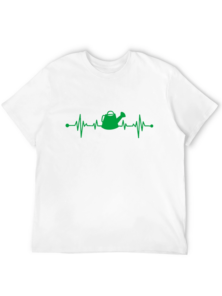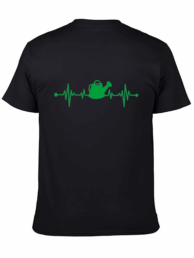 Show your love for gardening with this fun and stylish t-shirt. This black t-shirt features a creative green design of a heartbeat line with a watering can at the center, symbolizing a gardener's passion. The lightweight fabric ensures a comfortable fit for everyday wear. Wear it while tending your garden, running errands, or simply relaxing at home. It is a perfect gift for any gardening enthusiast.