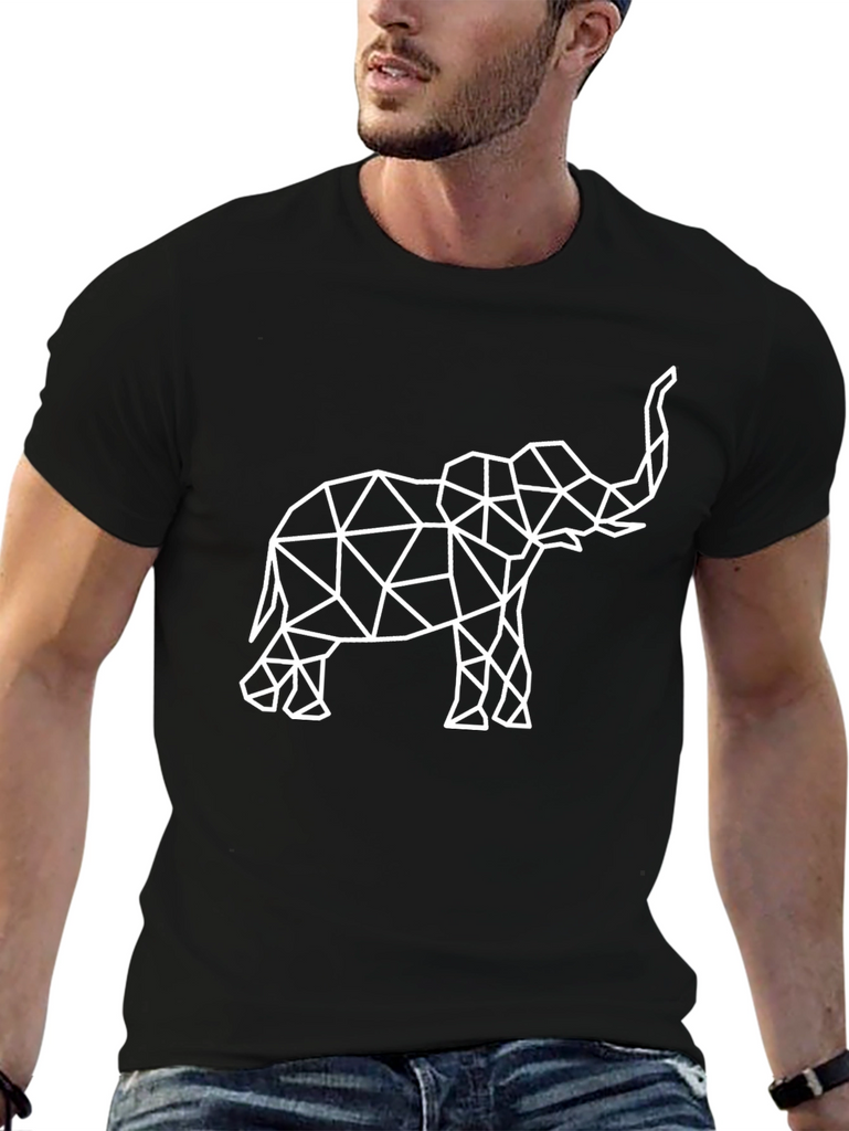 Showcase your love for wildlife with this stylish black t-shirt. Featuring a unique geometric elephant design, this tee is crafted from soft, breathable cotton for all-day comfort. The minimalist, polygonal artwork stands out boldly against the dark backdrop, making it a versatile piece for casual wear. Perfect for animal lovers, art enthusiasts, or anyone seeking a modern twist on a classic staple. Pair it with jeans or shorts for an effortlessly cool look. This tee is sure to be a conversation starter wherever you go!