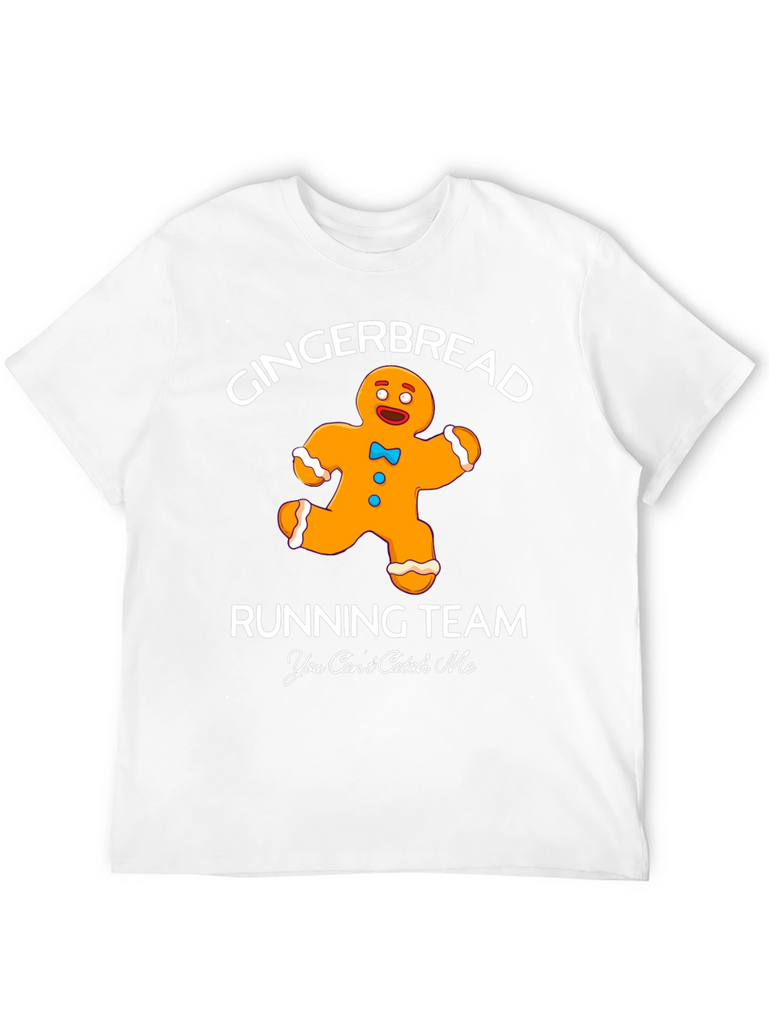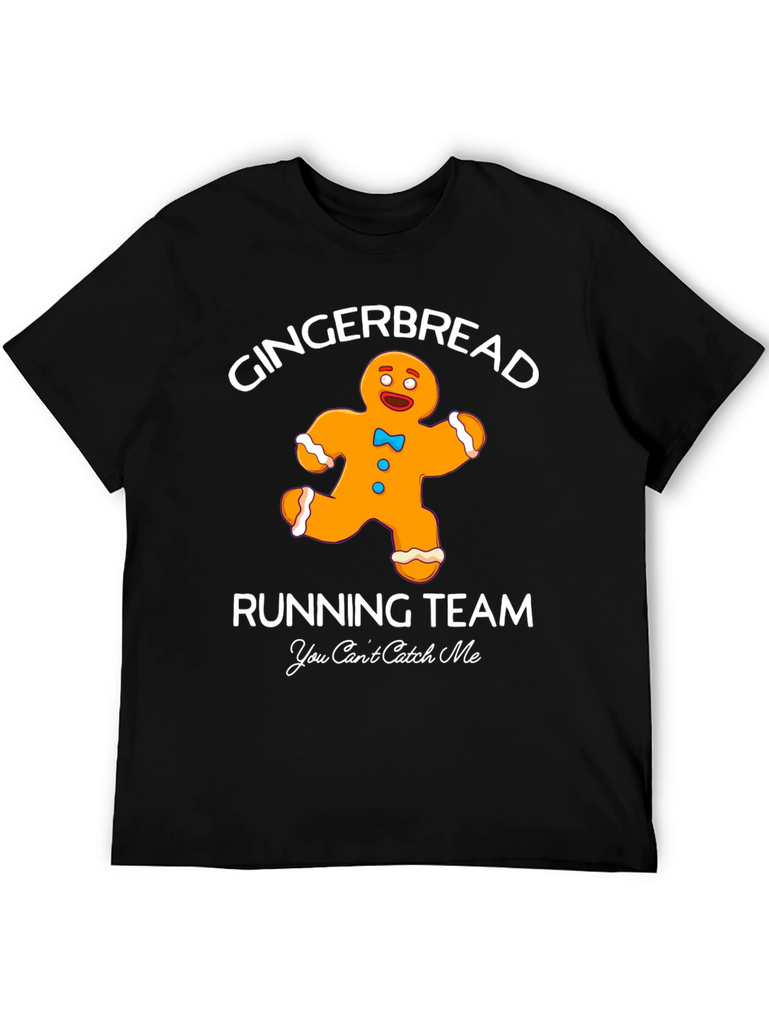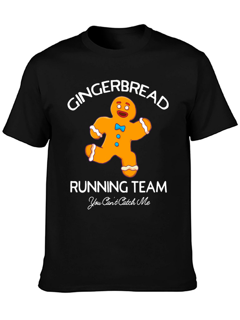 Get into the holiday spirit with this fun and festive black graphic t-shirt. The shirt features a playful design of a gingerbread man running, accompanied by the words "Gingerbread Running Team" and "You Can't Catch Me". This tee is perfect for casual wear during the holiday season, running errands, or even participating in a fun run. The simple design makes it easy to pair with jeans, leggings, or shorts. Made from comfortable materials, this t-shirt is sure to be a favorite for anyone with a sense of humor and a love for the holidays.
