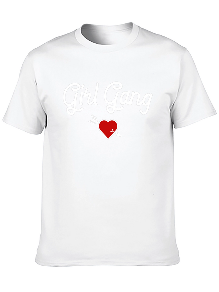 Show your love for your crew with this stylish black t-shirt. Featuring the playful "Girl Gang" slogan in a fun, script font, this tee also boasts a charming heart pierced with an arrow graphic, adding a touch of whimsy to your wardrobe. Made from comfortable, breathable fabric, it's perfect for casual outings, squad hangouts, or making a statement wherever you go. Whether you're hitting the town or chilling with your besties, this t-shirt is a must-have for any girl gang member. Pair it with your favorite jeans or a skirt for a cool and confident look.