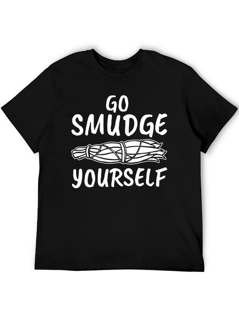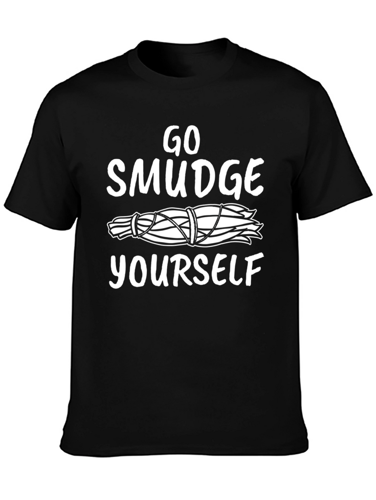 Embrace positive vibes with this stylish "Go Smudge Yourself" t-shirt. This black tee features bold white lettering and a graphic of a sage bundle, perfect for those who appreciate a touch of spirituality and humor in their wardrobe. Made from what appears to be soft, comfortable cotton, this tee offers a relaxed fit ideal for everyday wear. Wear it to yoga class, meditation sessions, or simply while lounging at home to promote a sense of calm and well-being. The eye-catching design is sure to spark conversations and spread good energy wherever you go. This tee is a must-have for anyone seeking a unique and meaningful addition to their casual attire.