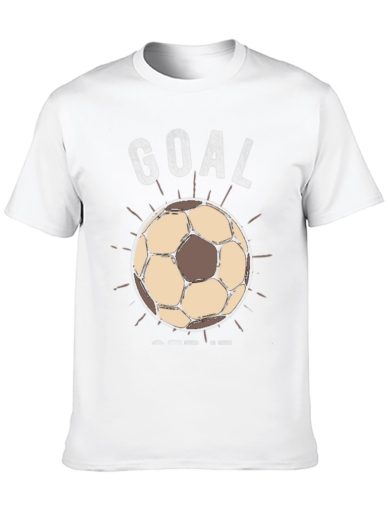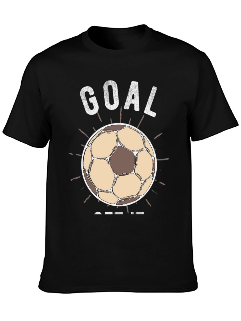 Score big with this black graphic t-shirt! Featuring a vintage-style soccer ball design with 'GOAL' above and 'GET IT' below, it's perfect for soccer fans and players. The weathered graphic gives it a cool, worn-in look. Made from comfortable, breathable fabric, this shirt is ideal for casual wear, sports events, or showing off your love for the game. A must-have for anyone who lives and breathes soccer.