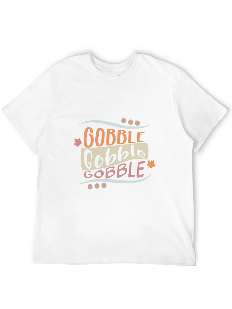 Celebrate Thanksgiving in style with this festive black t-shirt. The tee features a playful "Gobble" graphic in warm autumn colors. This comfortable tee is ideal for Thanksgiving dinner, family gatherings, or casual fall outings. The design incorporates subtle leaf accents for a touch of seasonal charm. This shirt is made from comfortable material ensuring a great fit and feel. Get yours today and spread some holiday cheer!