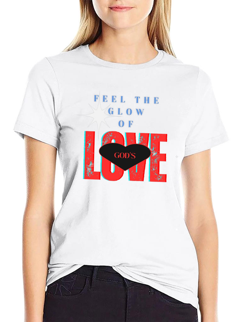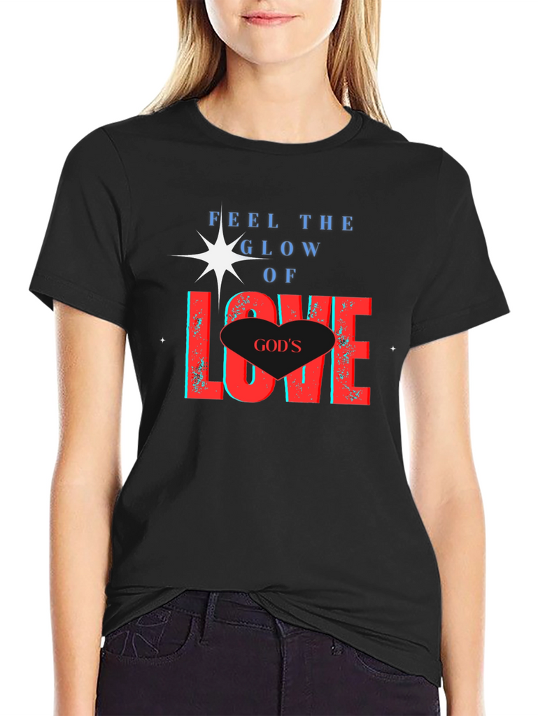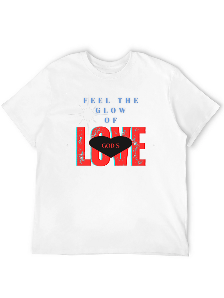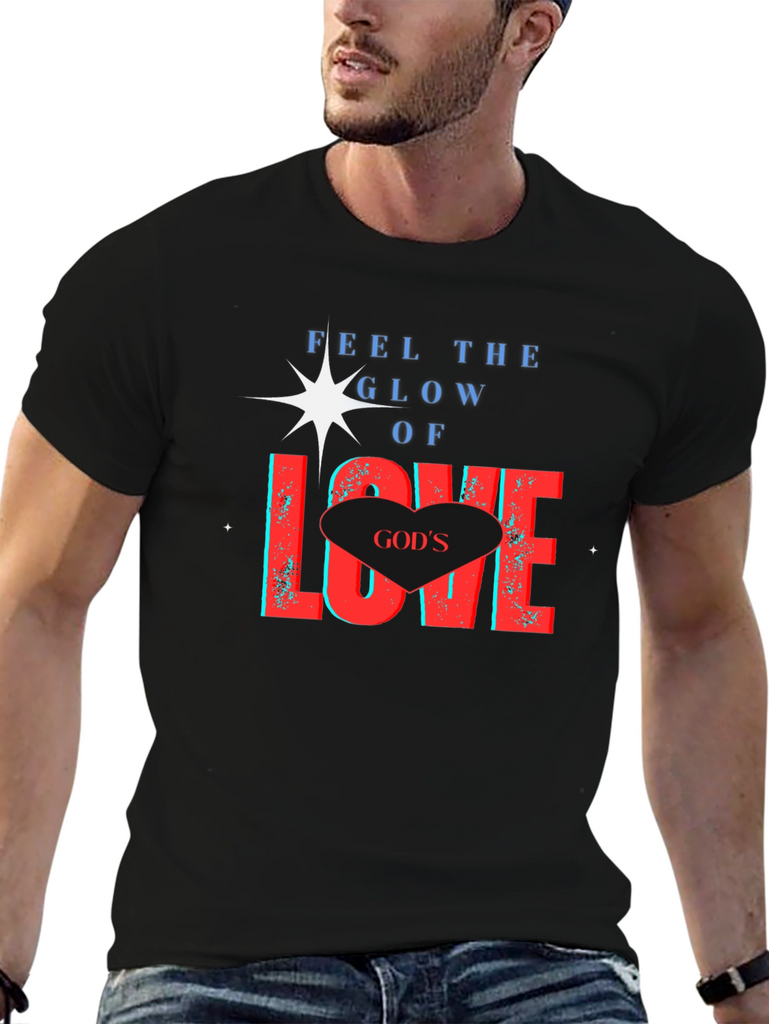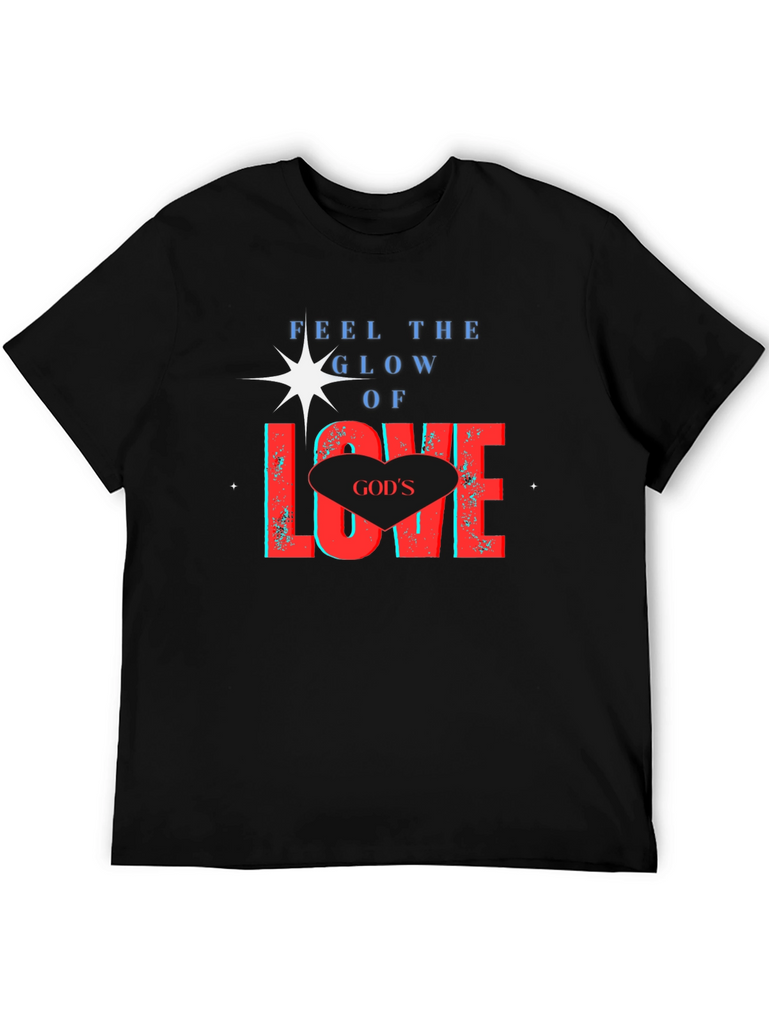Embrace your faith with this stylish and meaningful graphic tee. Featuring the words "Feel The Glow Of God's Love", this shirt is perfect for expressing your beliefs with style. The design showcases a vibrant, eye-catching graphic that combines stars and stylized text in red and blue hues. Made from a soft, breathable fabric, this tee offers exceptional comfort, making it ideal for everyday wear. Whether you're heading to church, meeting friends, or simply relaxing at home, this t-shirt allows you to showcase your faith in a fashionable way.