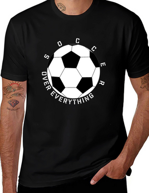 Show your love for the beautiful game with this eye-catching black t-shirt. Featuring a vibrant graphic of a soccer player celebrating a goal with the word "GOOOAAAL!" displayed, this shirt is perfect for any soccer enthusiast. The design includes a dynamic illustration of a player on his knees with arm raised, exclaiming the victory. Made from a comfortable fabric, it's ideal for casual wear, game days, or sports events. Let everyone know which team you are cheering for with this unique and expressive tee!