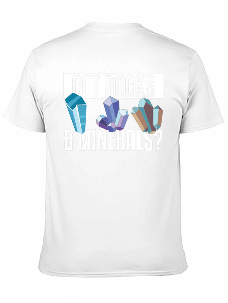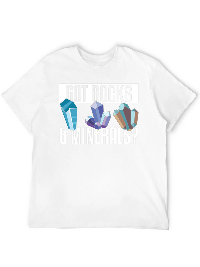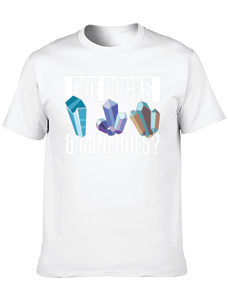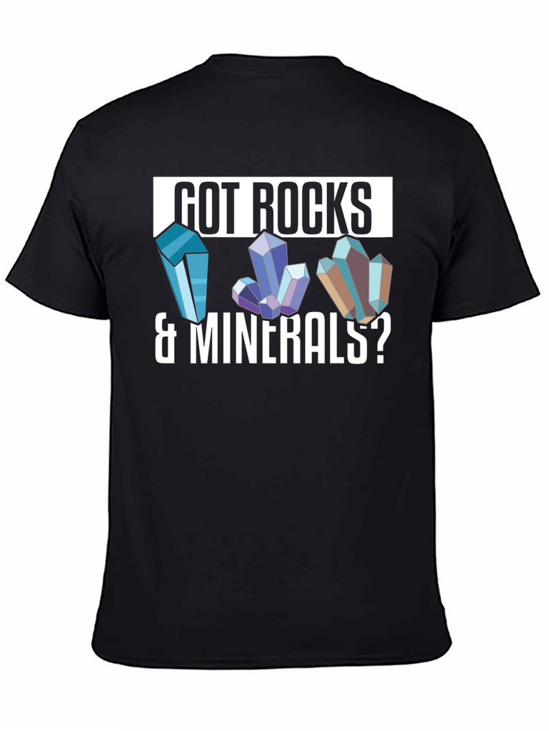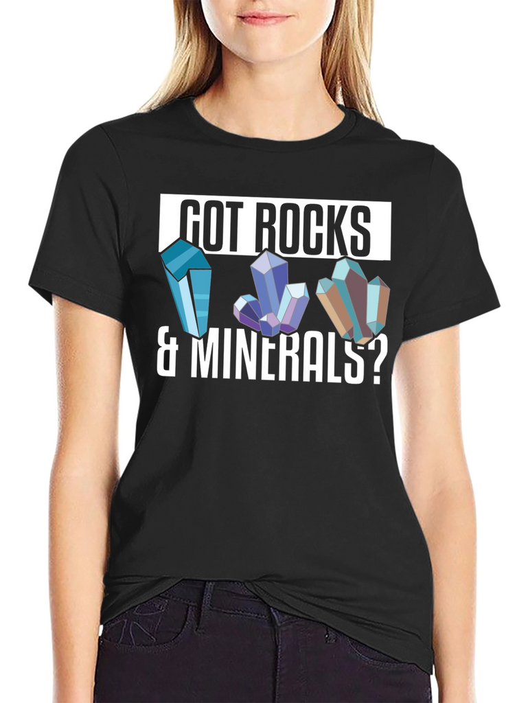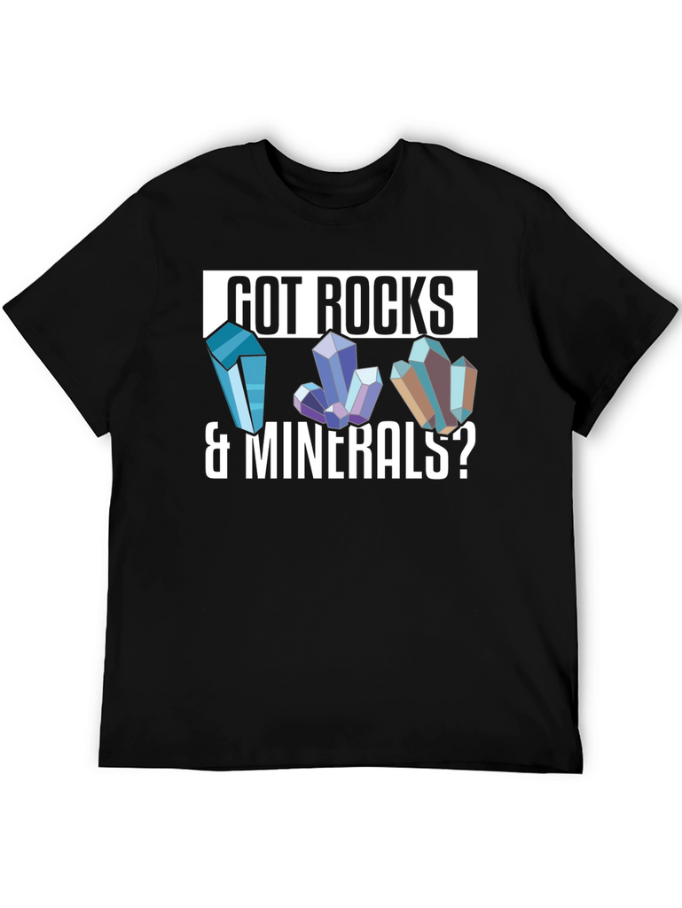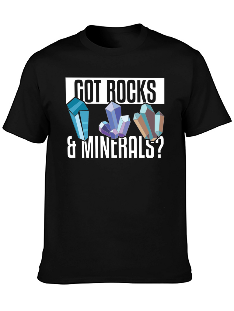 Show off your love for geology with this unique graphic t-shirt. Made from a comfortable, breathable fabric, this tee features a bold print that reads "Got Rocks & Minerals?" alongside colorful crystal illustrations. The black color provides a versatile backdrop for the eye-catching design. Perfect for rockhounds, geologists, or anyone fascinated by the earth sciences, this shirt is sure to spark conversations and showcase your passion. Wear it on your next field trip, to a gem and mineral show, or just around town to share your enthusiasm for all things geological.