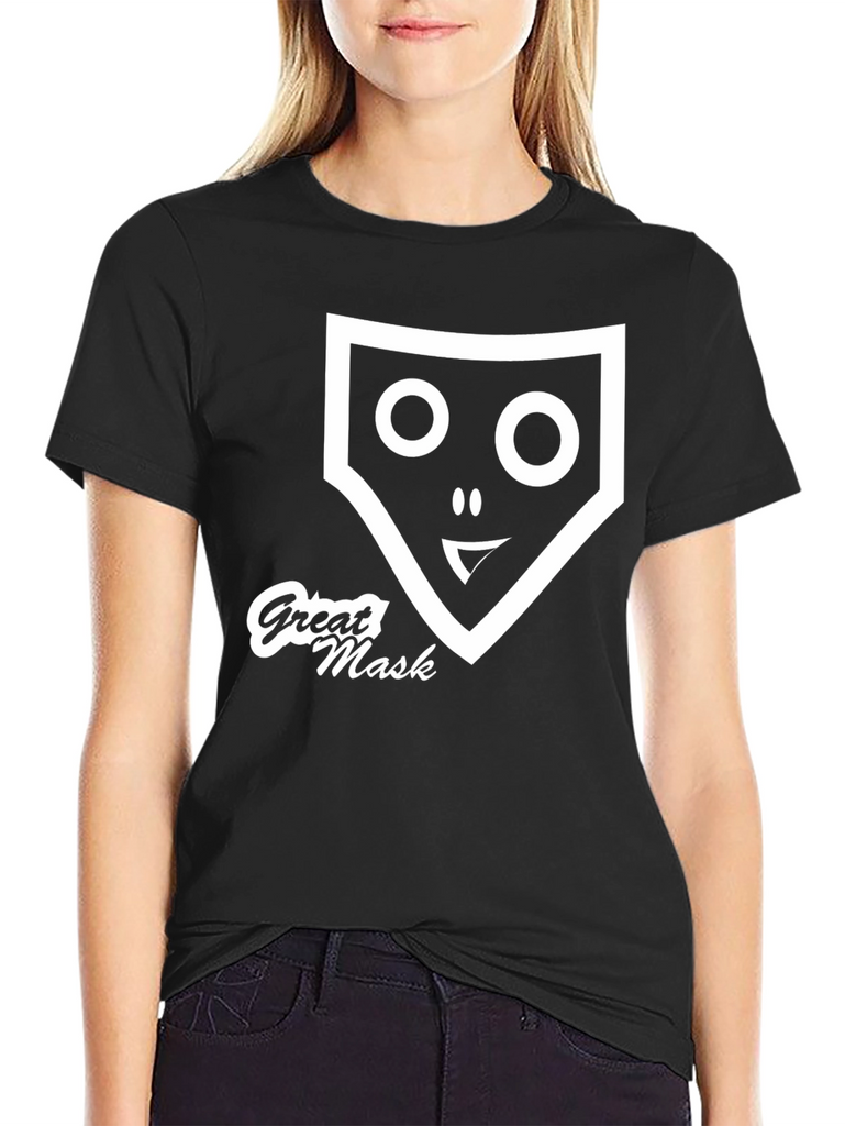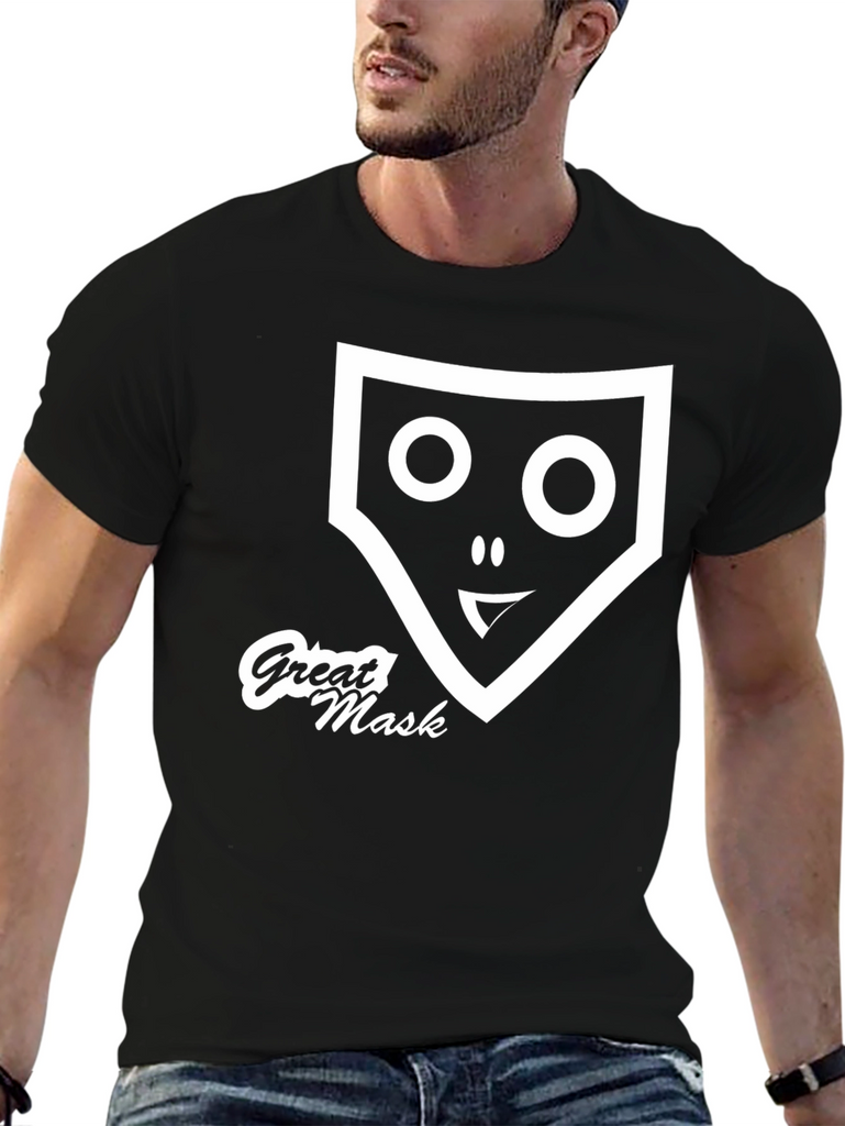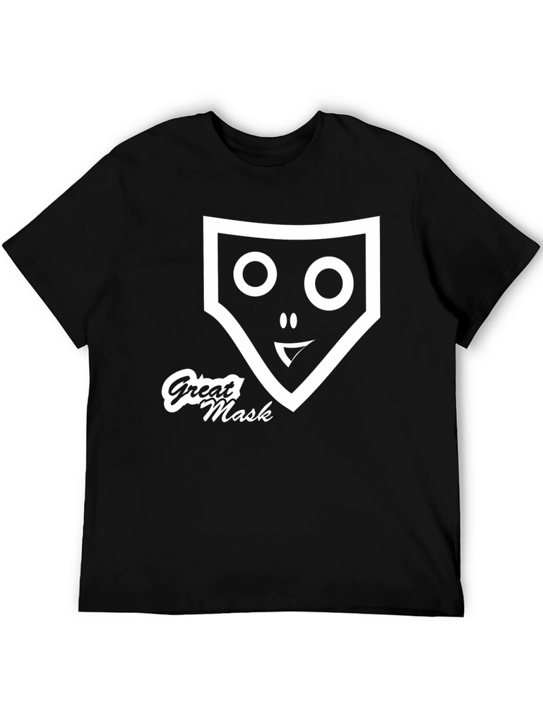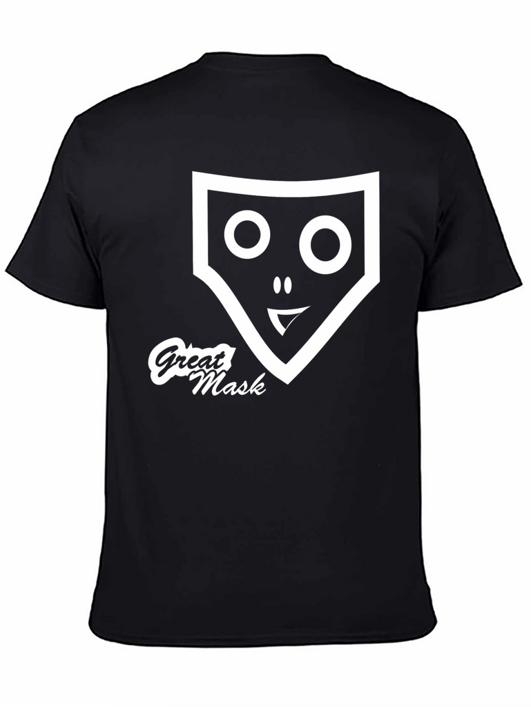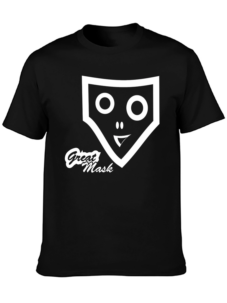 Show off your love for unique and eye-catching designs with this black t-shirt. Featuring a stylized white graphic of a mask with a playful, whimsical expression, paired with the words "Great Mask" in a stylish font, this tee is sure to spark conversation. The design is printed on a comfortable, classic-fit tee, perfect for casual wear. This t-shirt is ideal for everyday wear, concerts, casual hangouts or showing off your unique style. Its bold design and comfortable fit makes it a great addition to any wardrobe.
