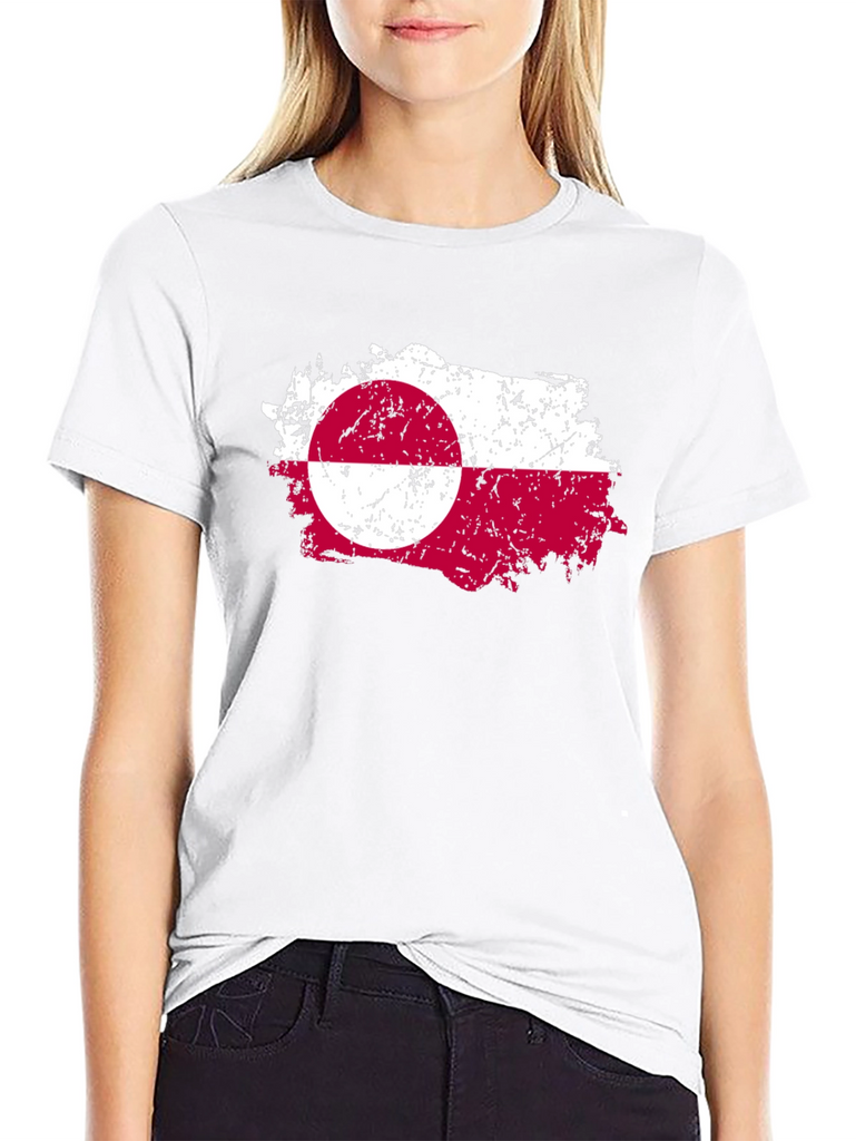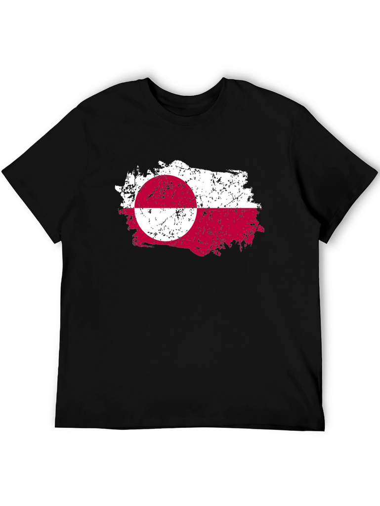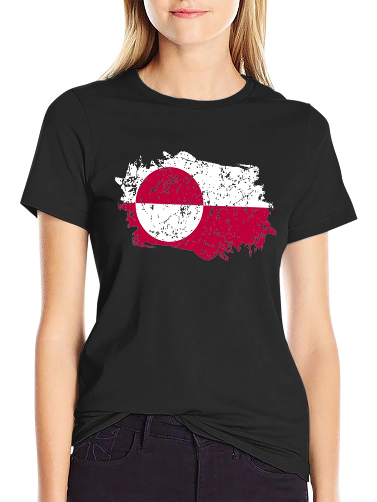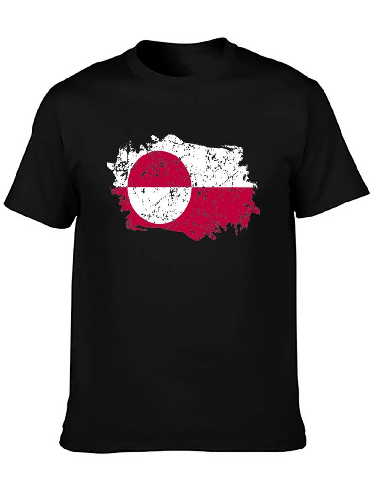 Show your Greenland pride with this unique t-shirt! This black tee features a distressed, grunge-style print of the Greenland flag. The flag's iconic red and white design stands out boldly against the dark background. Made from comfortable, breathable fabric, this shirt is perfect for everyday wear. The casual fit makes it ideal for a relaxed weekend look or showing off your heritage at cultural events. The unique flag design is a conversation starter. Get yours today and represent Greenland in style!
