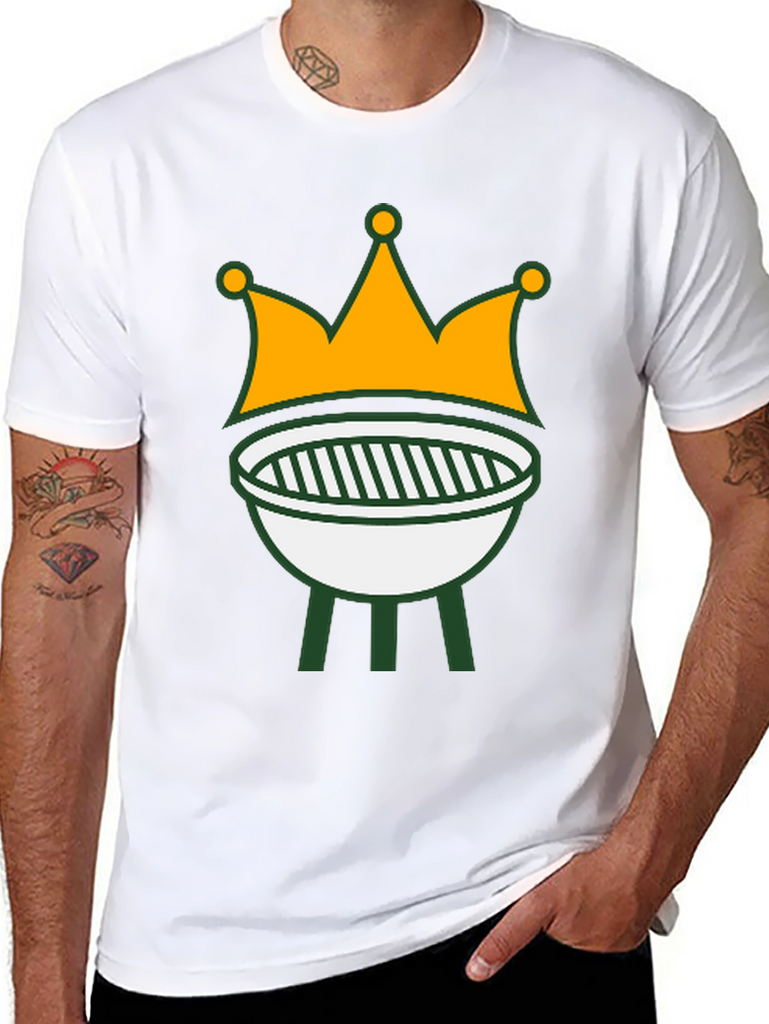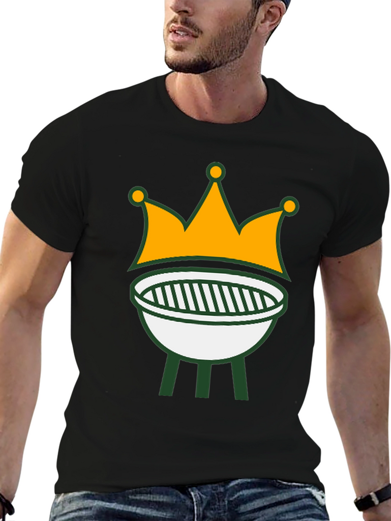 Show your love for grilling with this unique "Grill King" t-shirt. This black tee features a vibrant graphic of a barbecue grill topped with a golden crown, perfect for the backyard BBQ enthusiast. The design is eye-catching and fun, making it a great conversation starter at your next cookout. Made from comfortable materials, this t-shirt is ideal for casual wear, summer gatherings, or as a gift for the grill master in your life. Get ready to rule the grill in style!