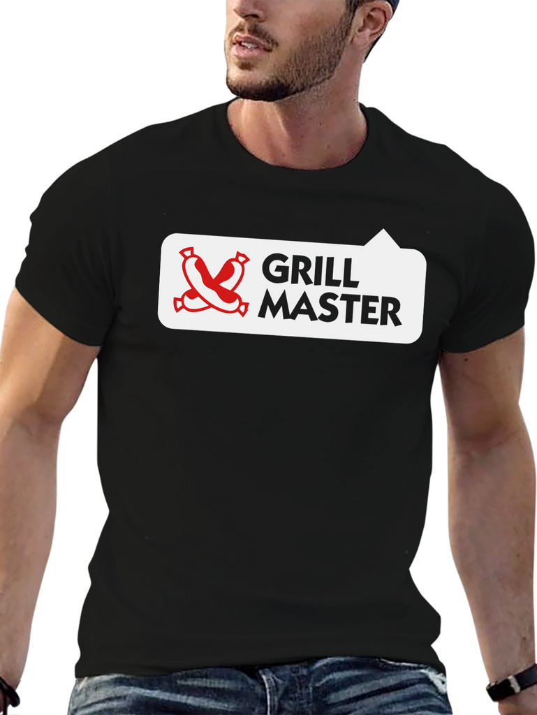 Show off your grilling skills with this stylish Grill Master T-shirt. Made from comfortable, breathable fabric, this tee features a bold design with crossed sausages and the text "Grill Master" in a speech bubble style graphic. The black shirt offers a versatile fit for any casual occasion, from backyard barbecues to cookouts. Perfect for the grill enthusiast or anyone who loves to cook outdoors. Get yours today and let everyone know who's in charge of the grill!
