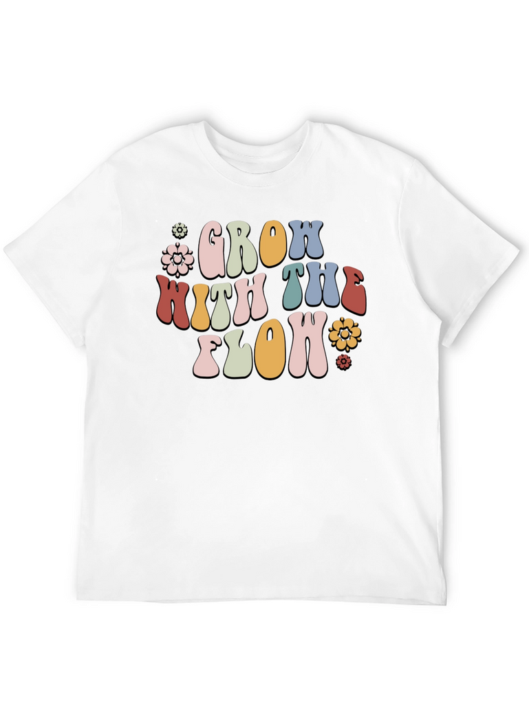 Embrace a positive mindset with this stylish "Grow With The Flow" graphic t-shirt. Made from a soft, comfortable fabric, this tee features a vibrant, retro-inspired design with colorful lettering and floral accents. The relaxed fit makes it perfect for everyday wear, whether you're running errands, hanging out with friends, or simply lounging at home. Spread good vibes and inspire those around you with this feel-good tee. Pair it with jeans, shorts, or a skirt for a casual yet fashionable look. This tee is a reminder to stay positive and adaptable in all aspects of life.