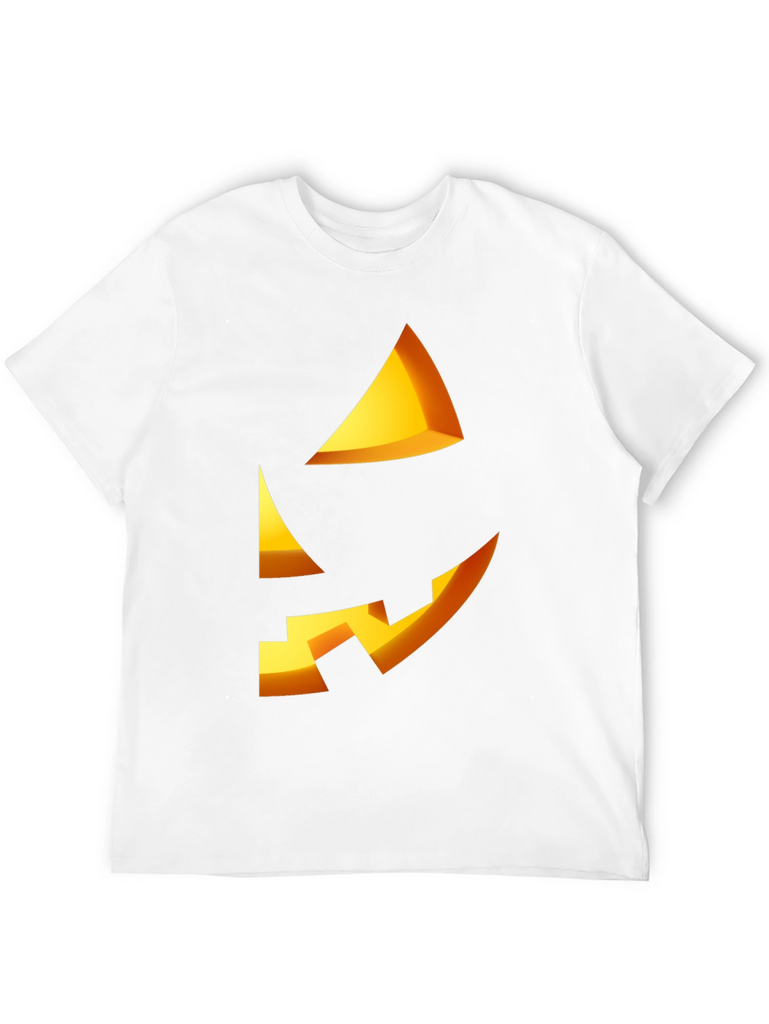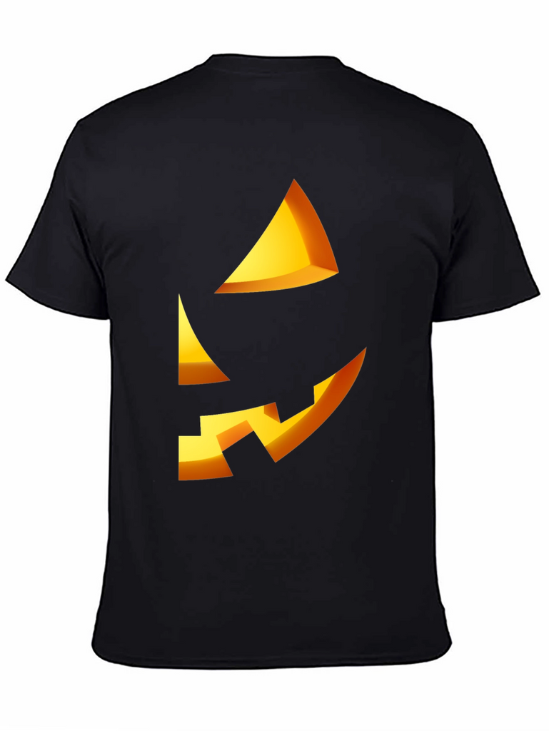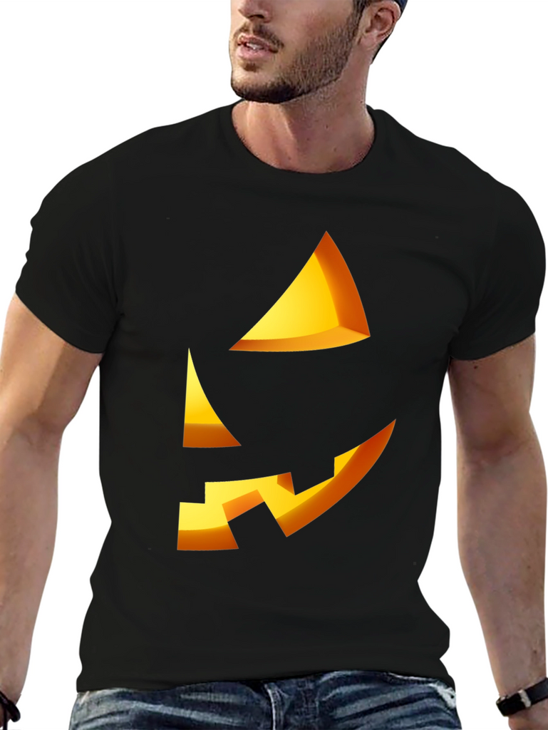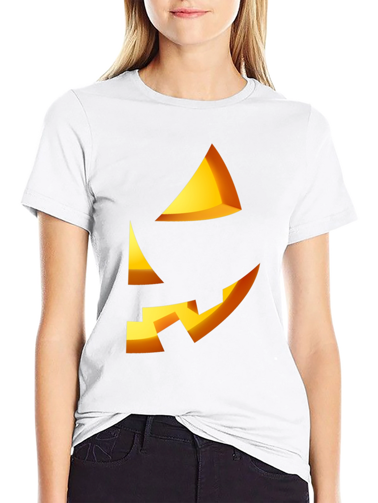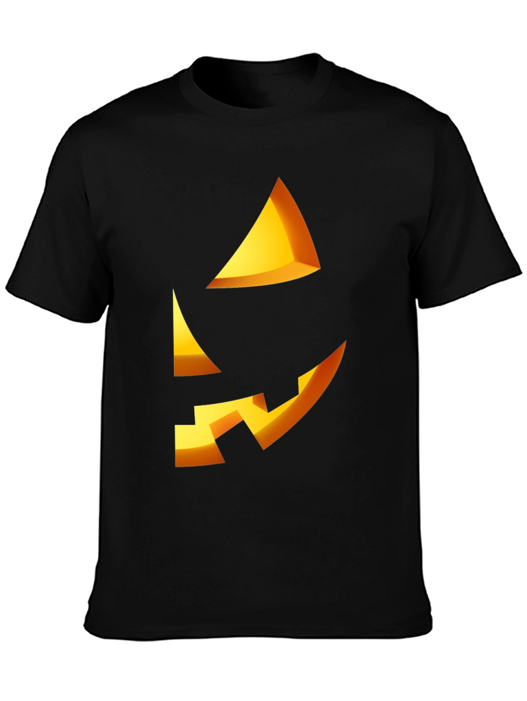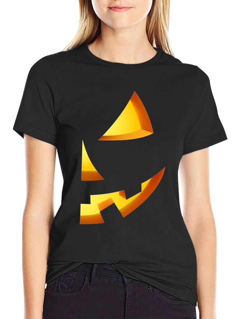 Get spooky in this unique black tee featuring a vibrant pumpkin face graphic. The eye-catching design captures the essence of Halloween with its bold, geometric shapes in shades of yellow and orange. Made from soft, breathable fabric, this t-shirt offers all-day comfort and style. Perfect for Halloween parties, casual outings, or adding a festive touch to your everyday wardrobe. Pair it with jeans or leggings for a fun and spirited look. Stand out from the crowd and celebrate the season with this standout Halloween tee.