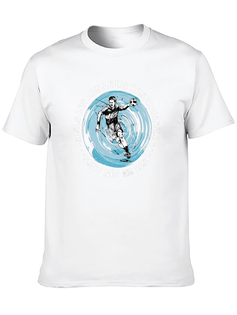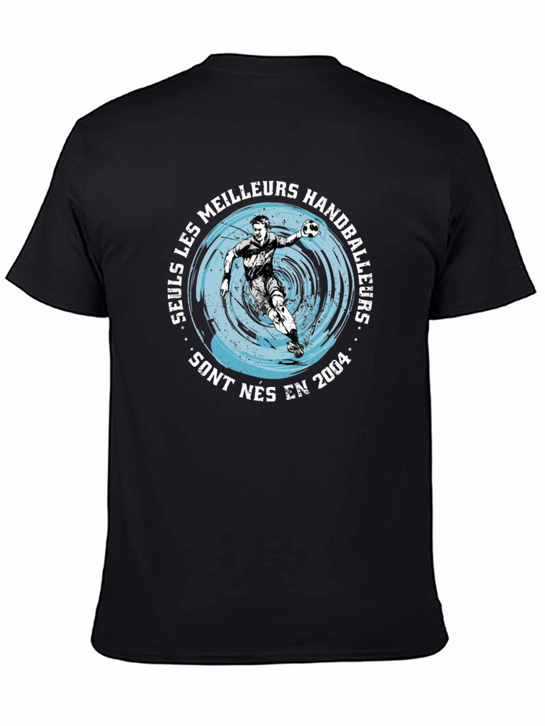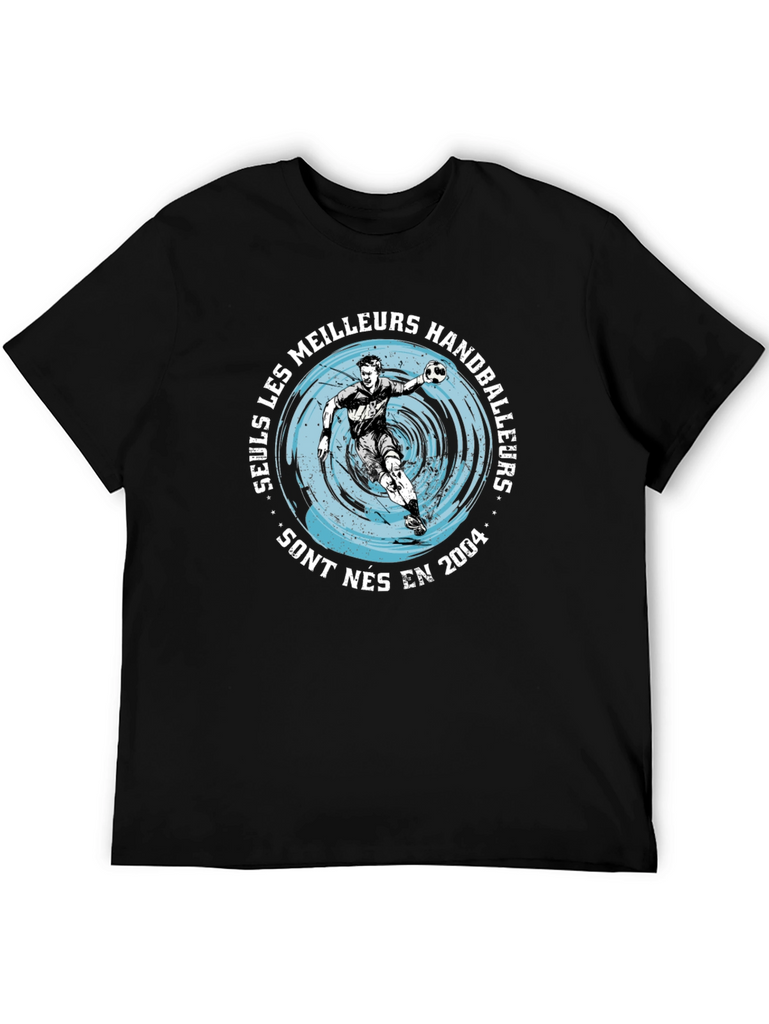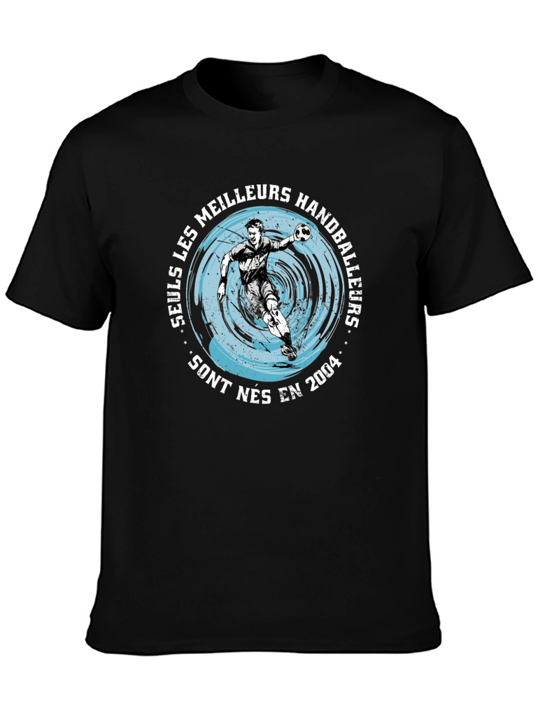 Show off your passion for handball with this unique graphic t-shirt. The design features a dynamic handball player illustration encircled by bold text that reads 'SEULS LES MEILLEURS HANDBALLEURS SONT NÉS EN 2004'. Made from comfortable black fabric, this shirt is perfect for everyday wear or cheering on your favorite team. Whether you're a player or a fan, this t-shirt is a great way to express your love for the sport. Ideal for casual outings, sports events, or as a thoughtful gift for the handball enthusiast in your life. Grab yours today and represent the handball spirit!