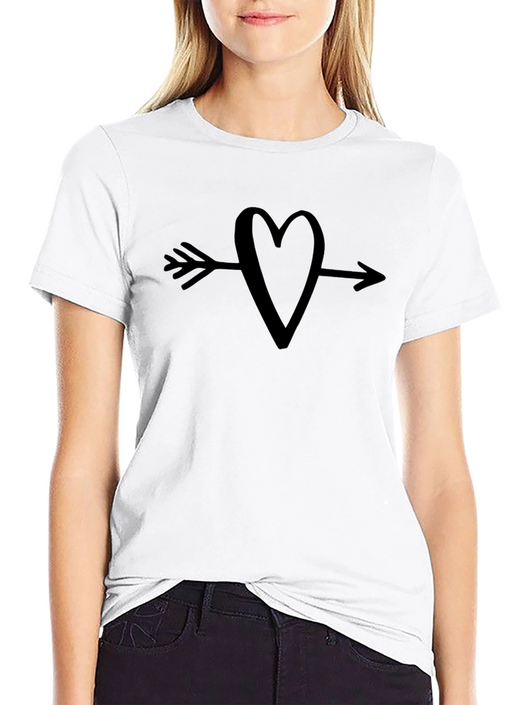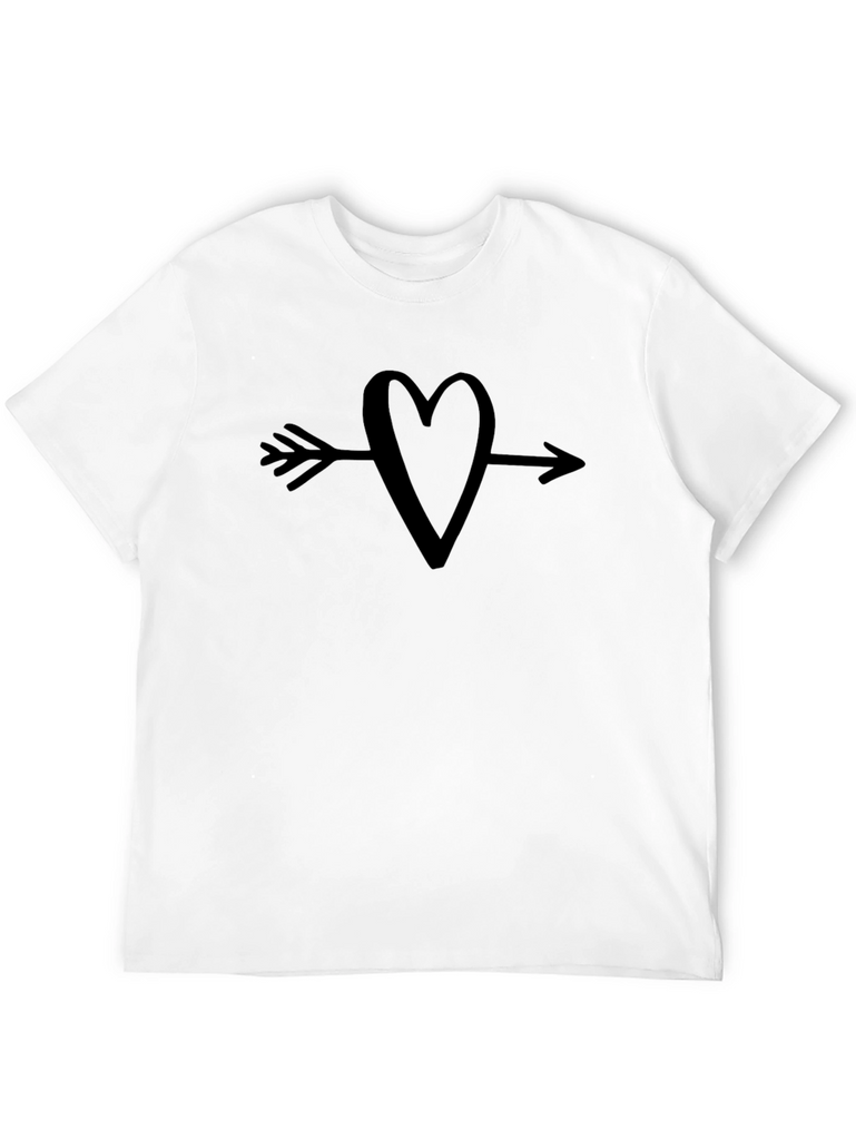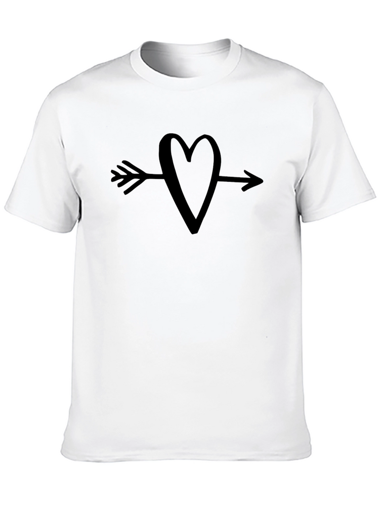 Show your love with this trendy Heart Arrow T-Shirt. This casual black tee features a unique graphic print with a heart pierced by an arrow, making it a stylish choice for everyday wear. The classic crew neck and short sleeves offer a comfortable fit. Made from soft, breathable fabric, this t-shirt is perfect for expressing your individual style. Pair it with jeans or shorts for a cool, relaxed look. Ideal for casual outings, dates, or simply lounging around. Add this versatile piece to your wardrobe today!